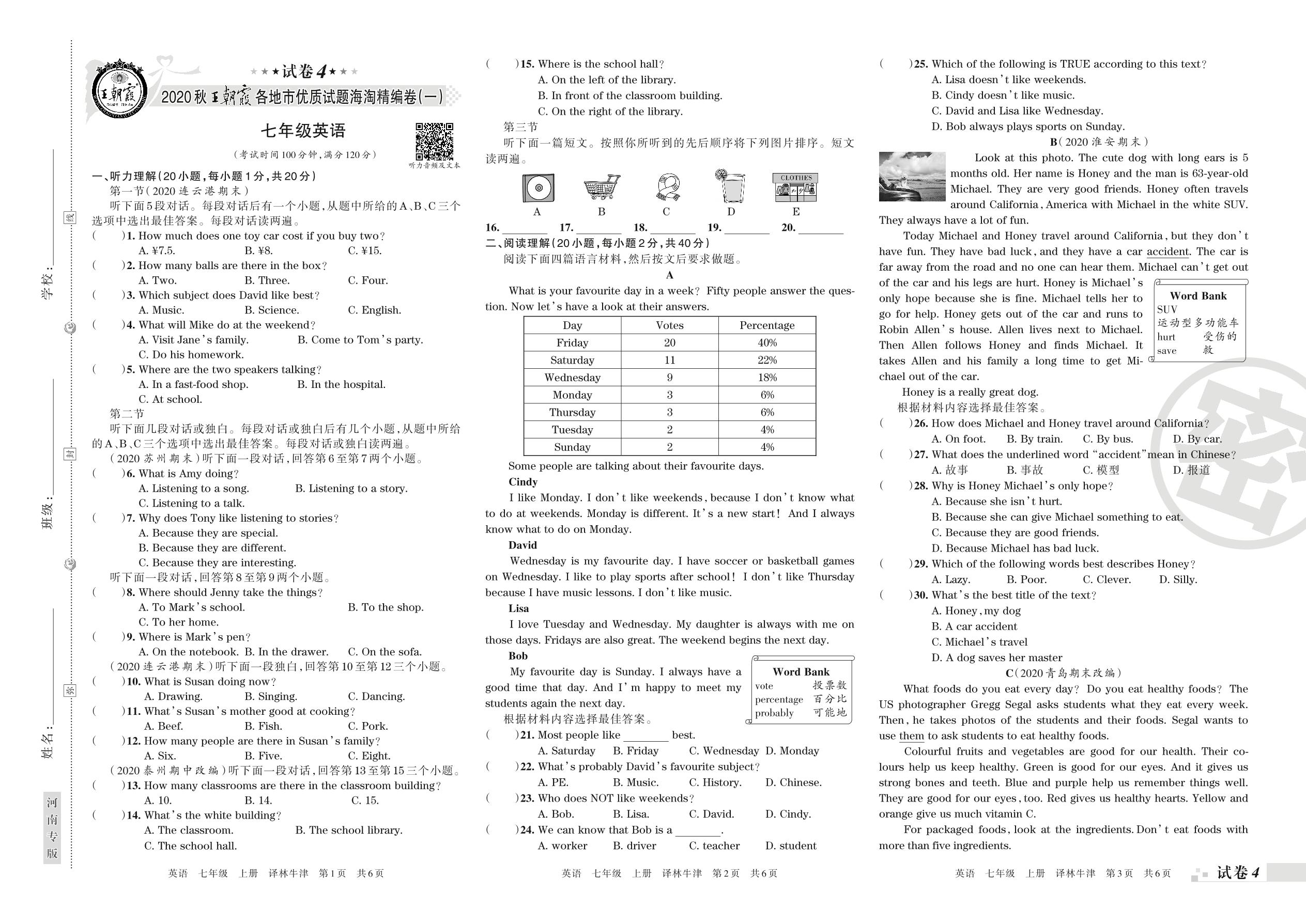 王朝霞海淘期末精编卷七年级上册英语(译林版)【4】