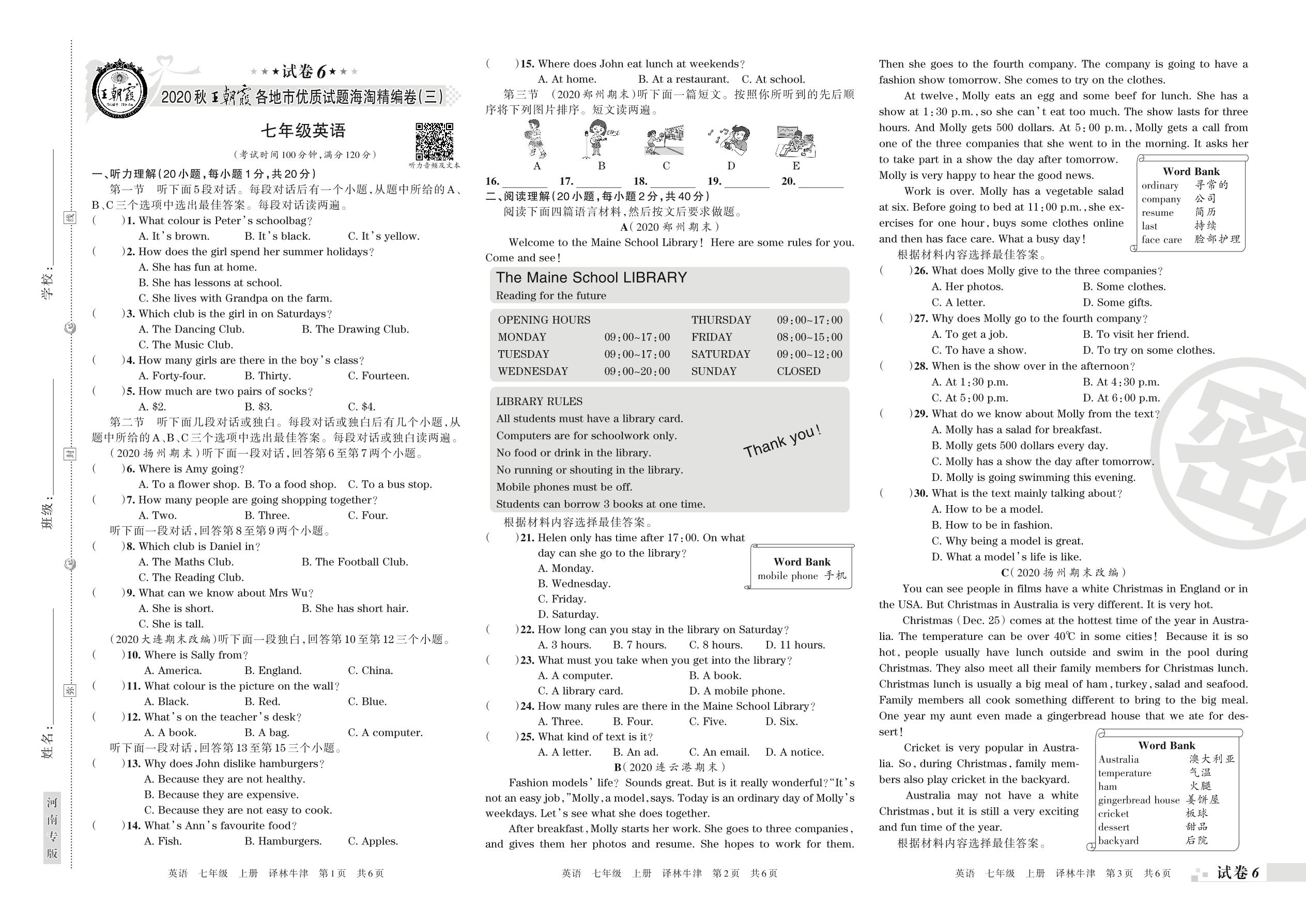王朝霞海淘期末精编卷七年级上册英语(译林版)【6】