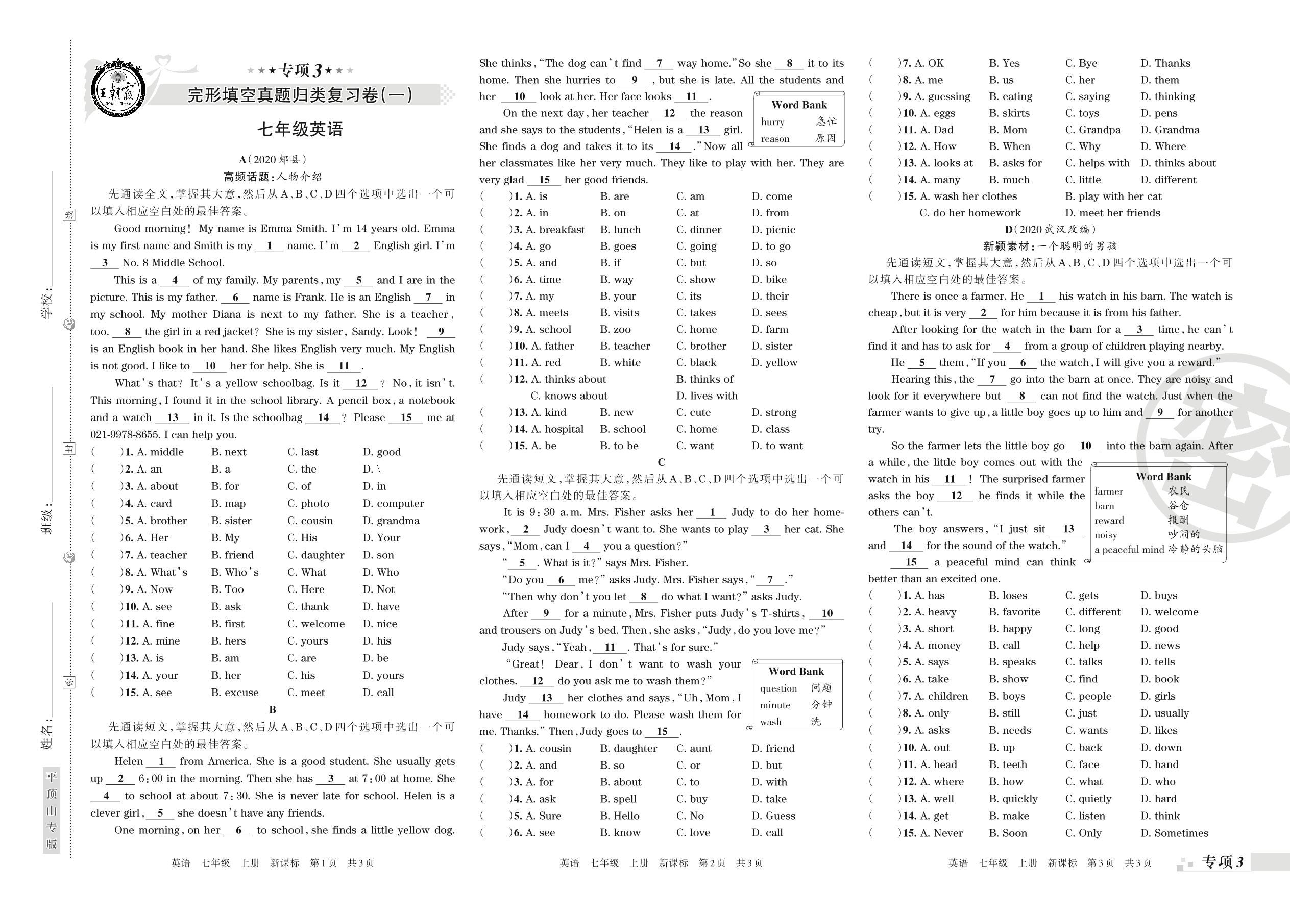 王朝霞期末专项卷——完形填空真题归类复习七年级上册英语(新课版)_R210807184133【0】