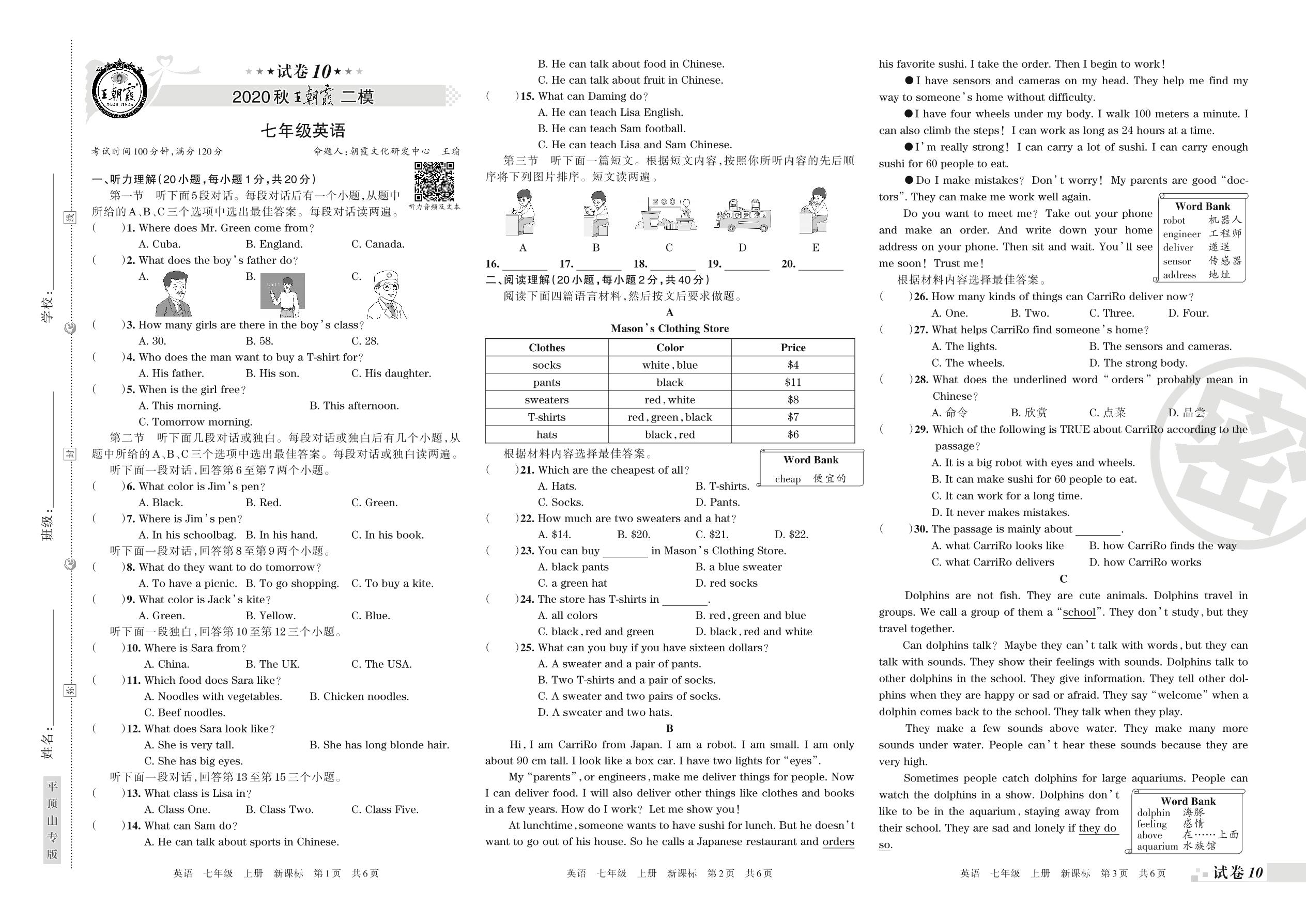 王朝霞期末模拟卷七年级上册英语(新课版)_R210807184302【10】