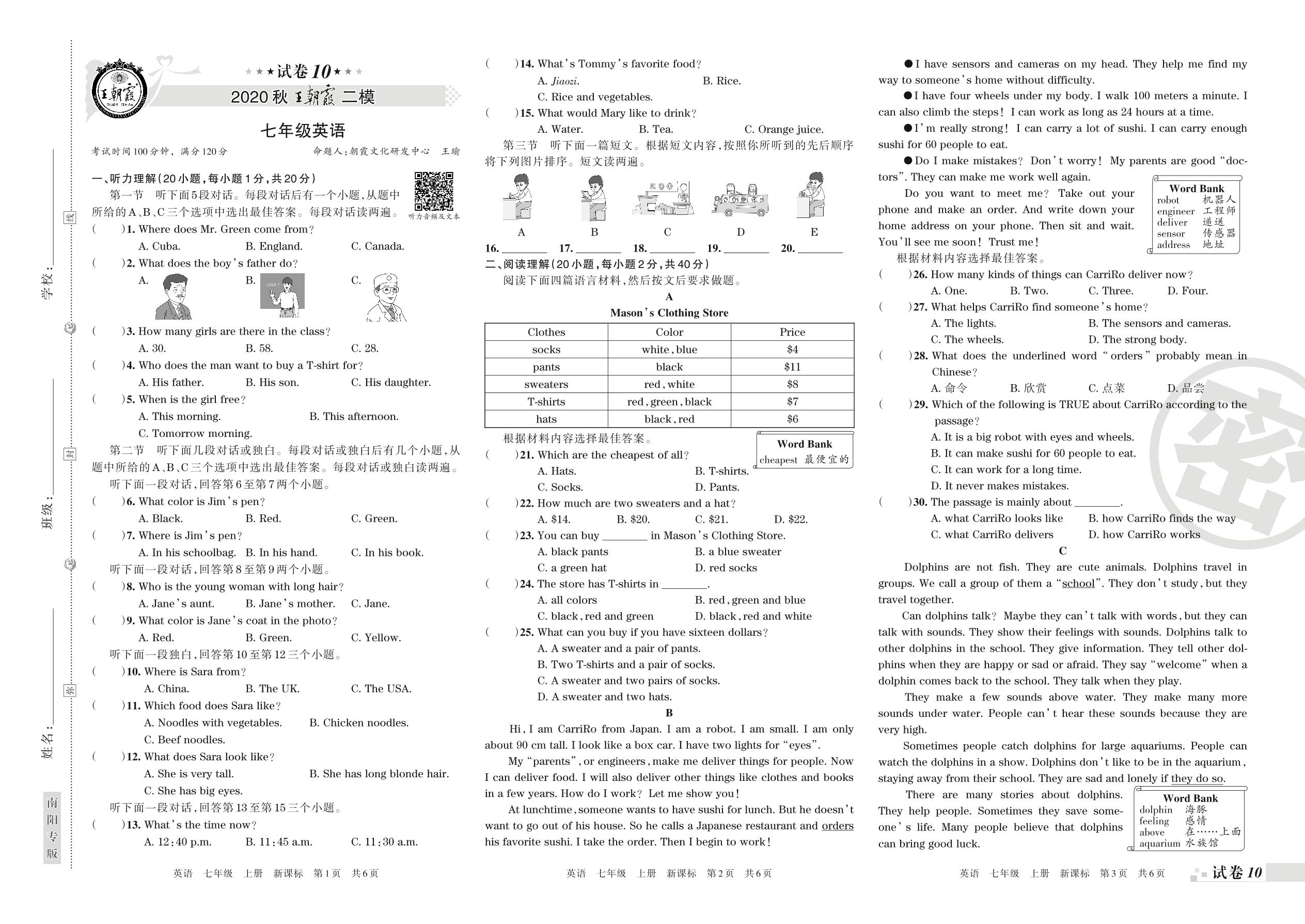 王朝霞期末模拟卷七年级上册英语(新课版)_R210807184636【10】