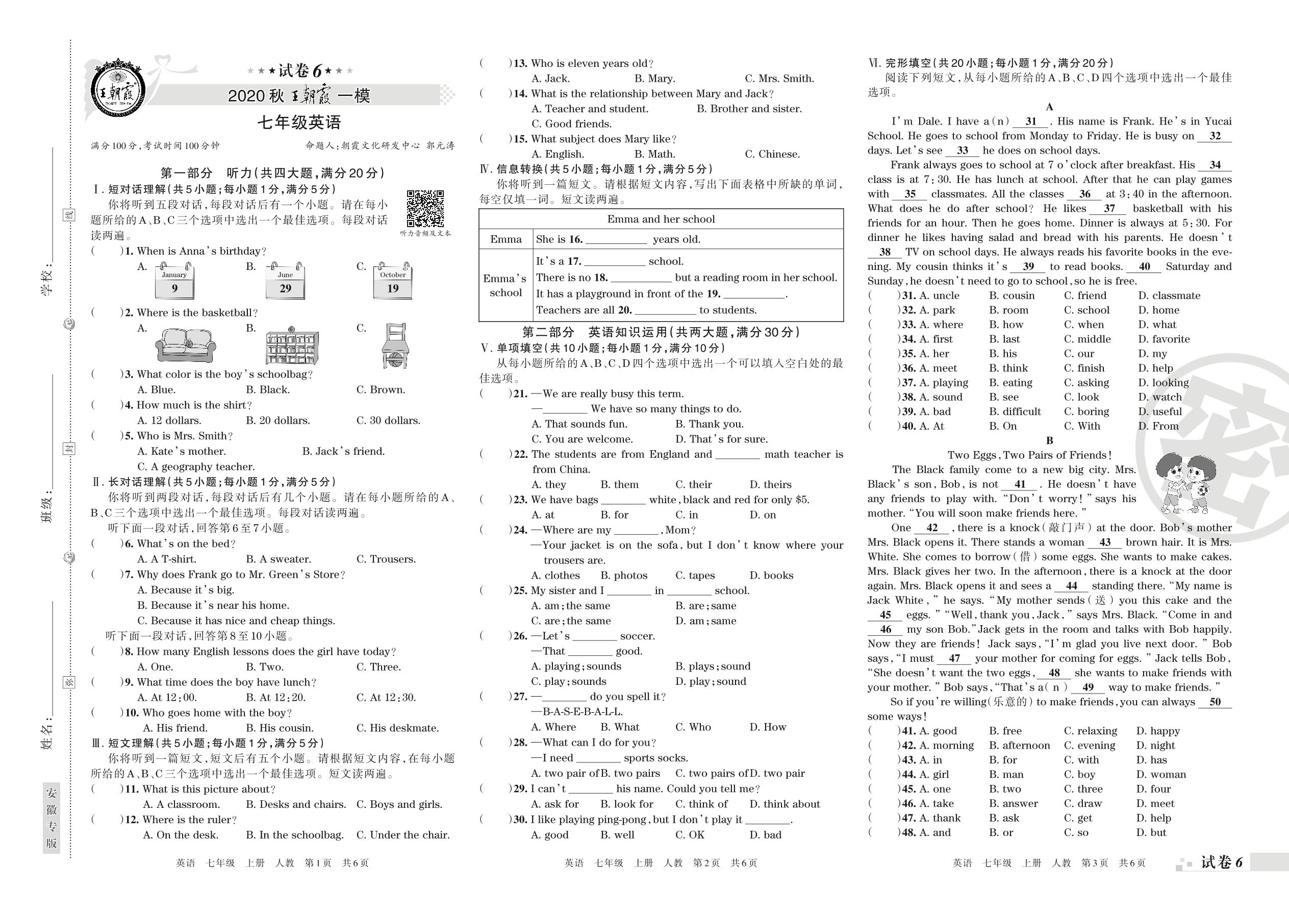 王朝霞期末模拟卷七年级上册英语(人教版)_R210807185845【6】