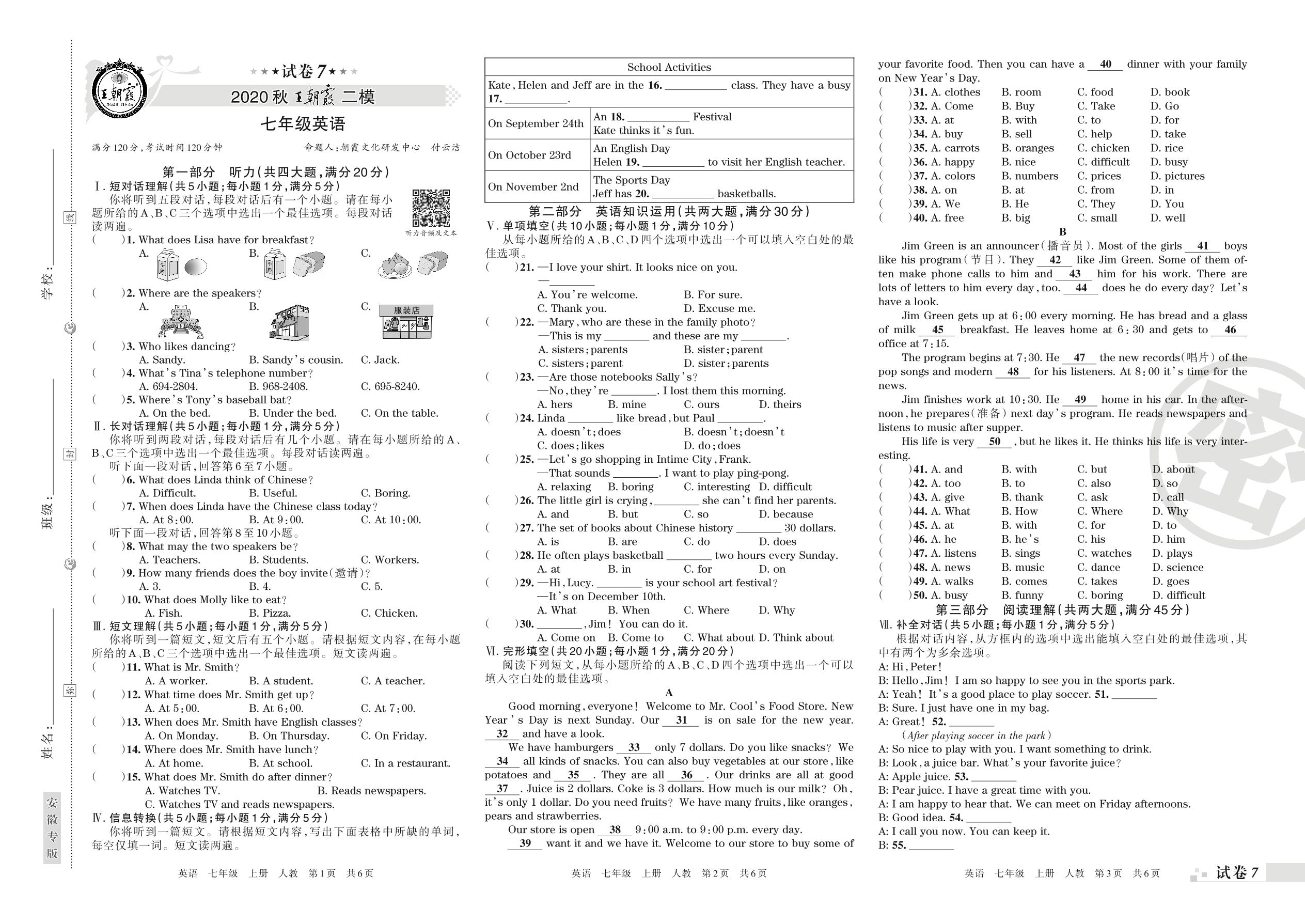 王朝霞期末模拟卷七年级上册英语(人教版)_R210807185857【7】