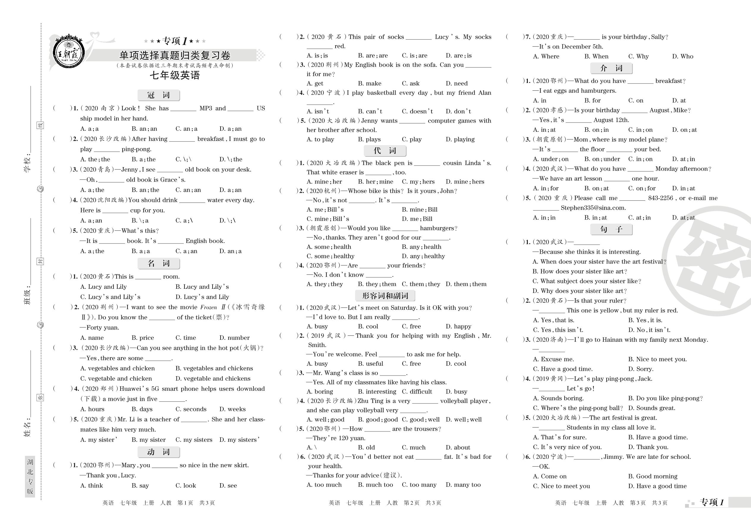 王朝霞期末专项卷——单项选择、完形填空真题归类复习七年级上册英语(人教版)_R210807185935【0】