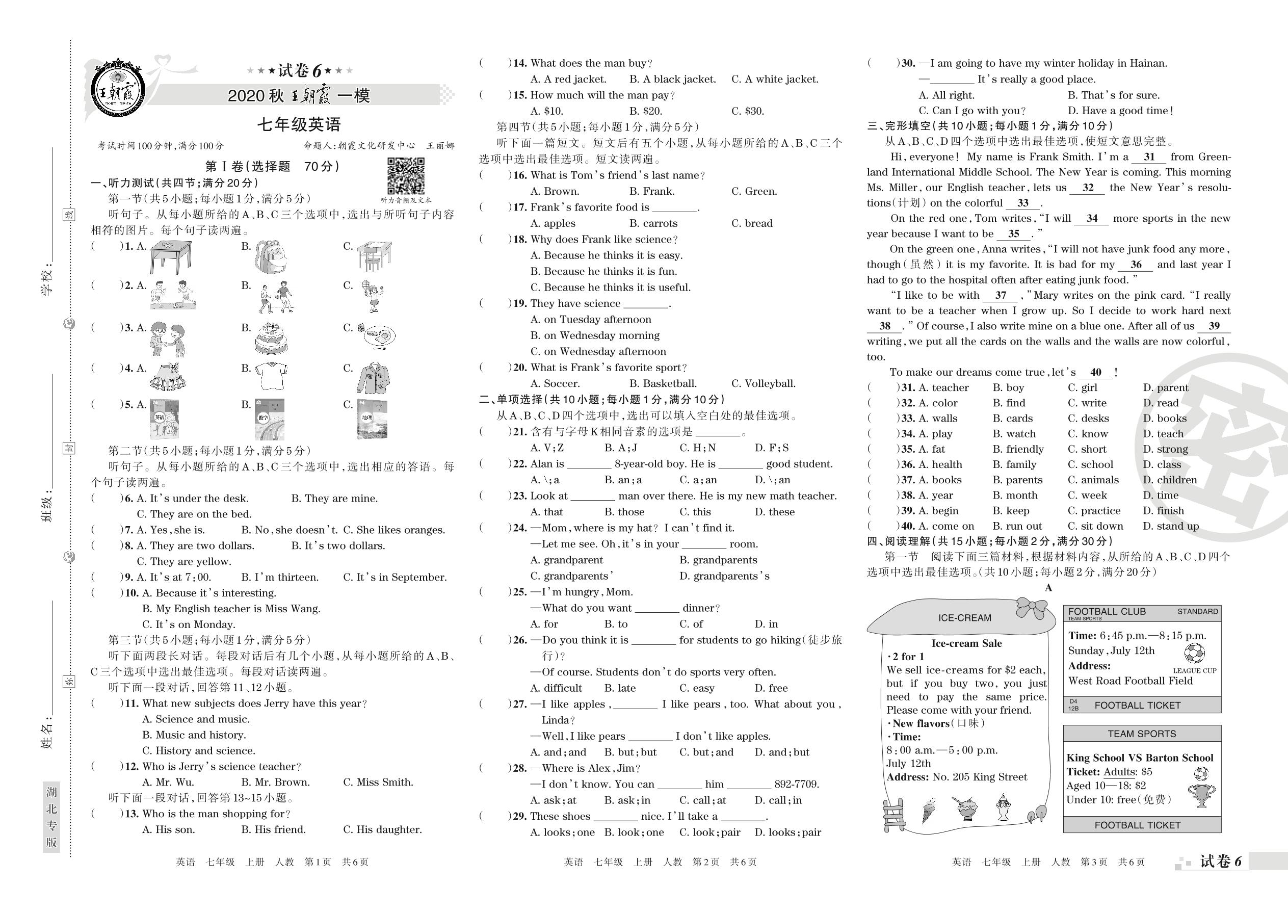 王朝霞期末模拟卷七年级上册英语(人教版)_R210807190048【6】