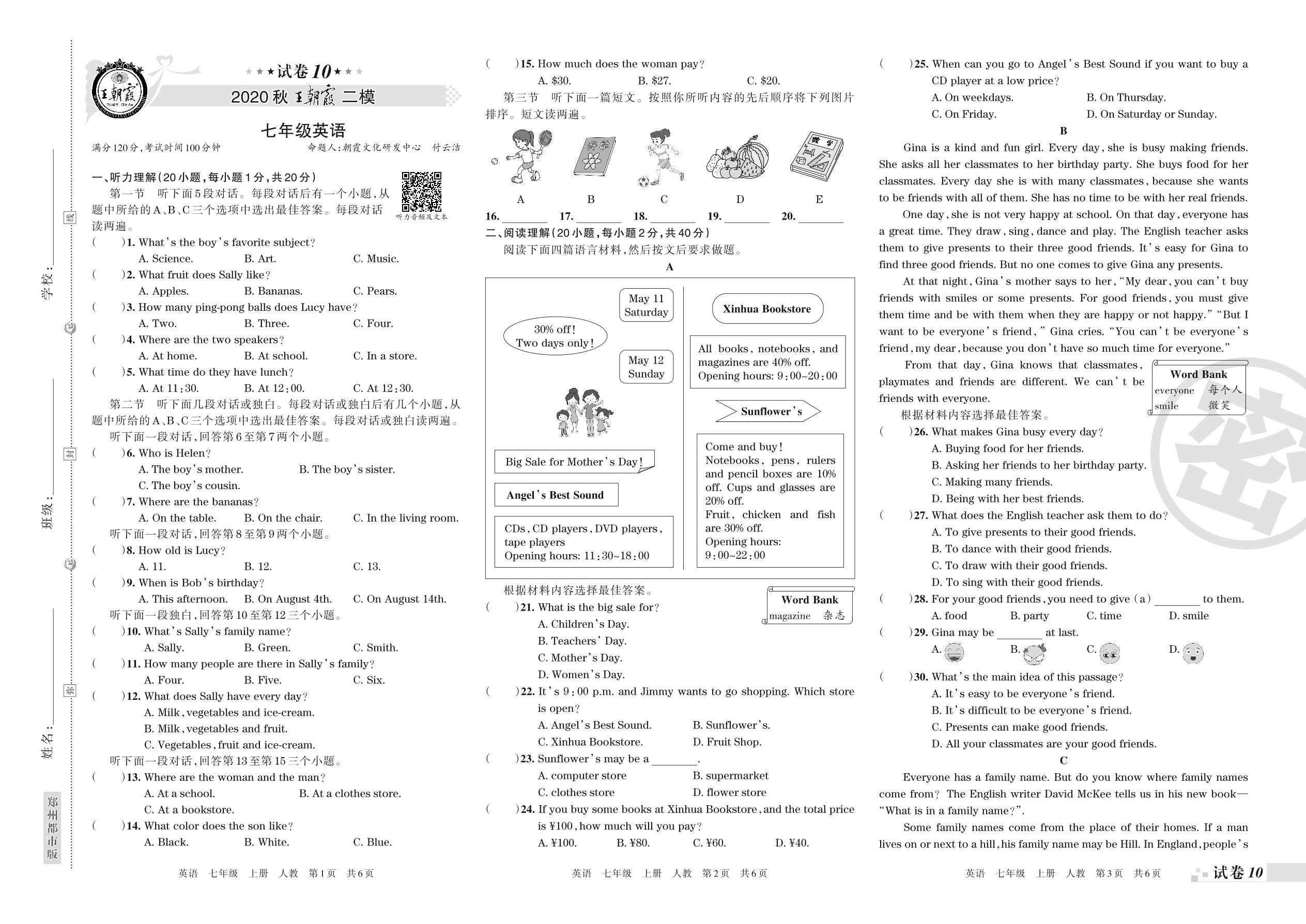 王朝霞期末模拟卷七年级上册英语(人教版)_R210807190732【10】