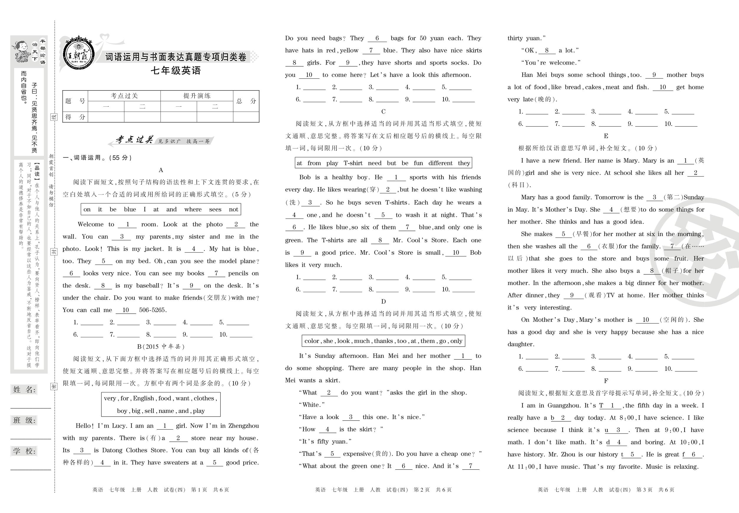 王朝霞期末专项卷——词语运用与书面表达真题专项归类七年级上册英语(人教版)【0】