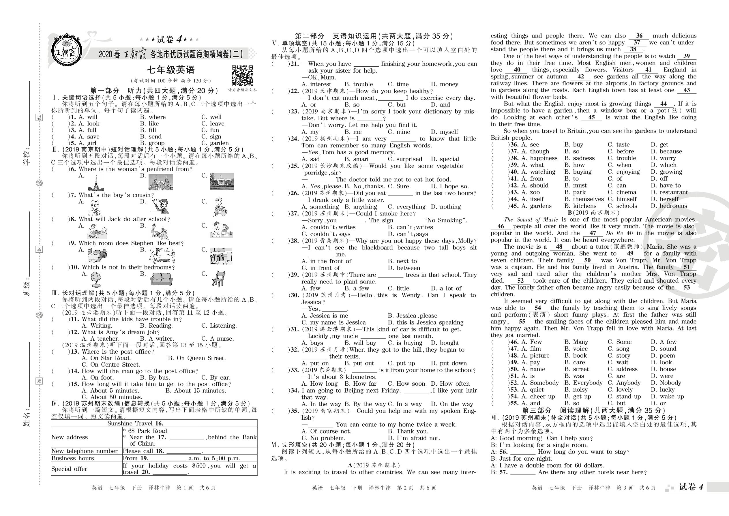 各地市优质试题海淘精编卷(二)七年级下册英语(译林版)_R210807191353【4】