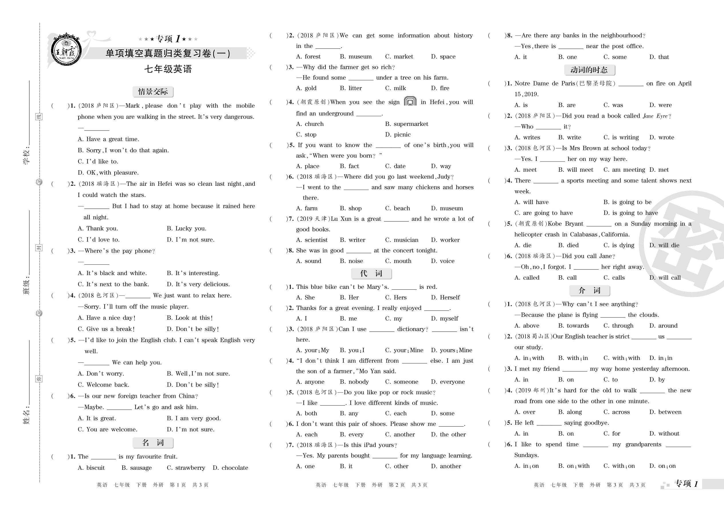 王朝霞期末专项卷——单项填空(一)(二)真题归类复习卷七年级下册英语(外研版)_R210807191431【0】