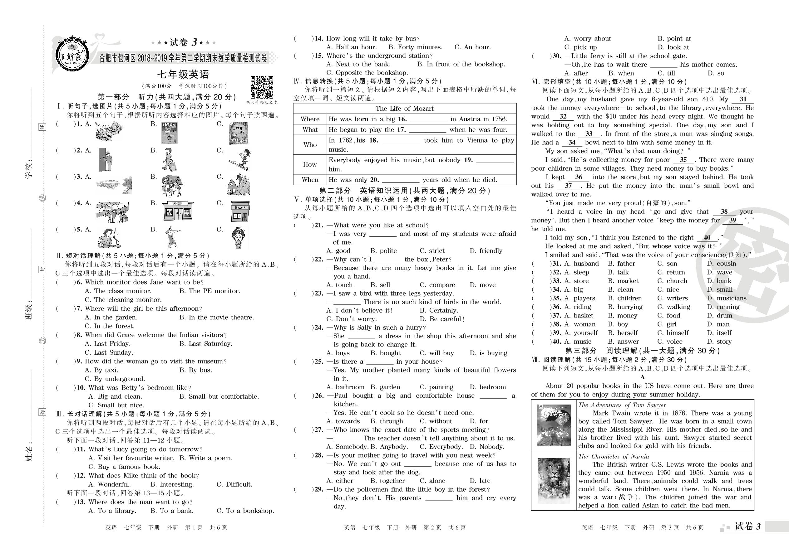 2018-2019学年第二学期合肥市包河区七年级英语试卷(外研版)【3】