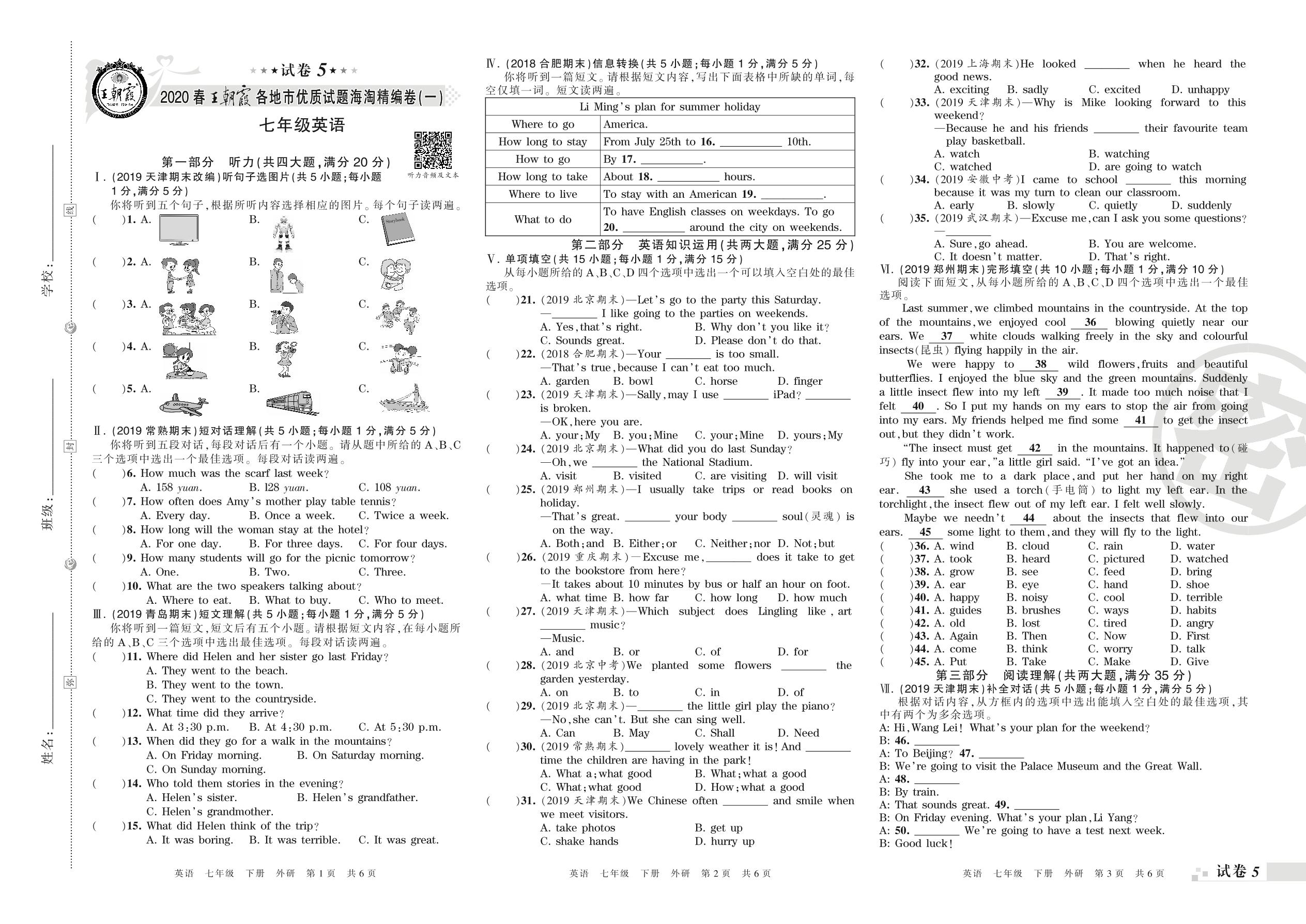 各地市优质试题海淘精编卷(一)七年级下册英语(外研版)【5】