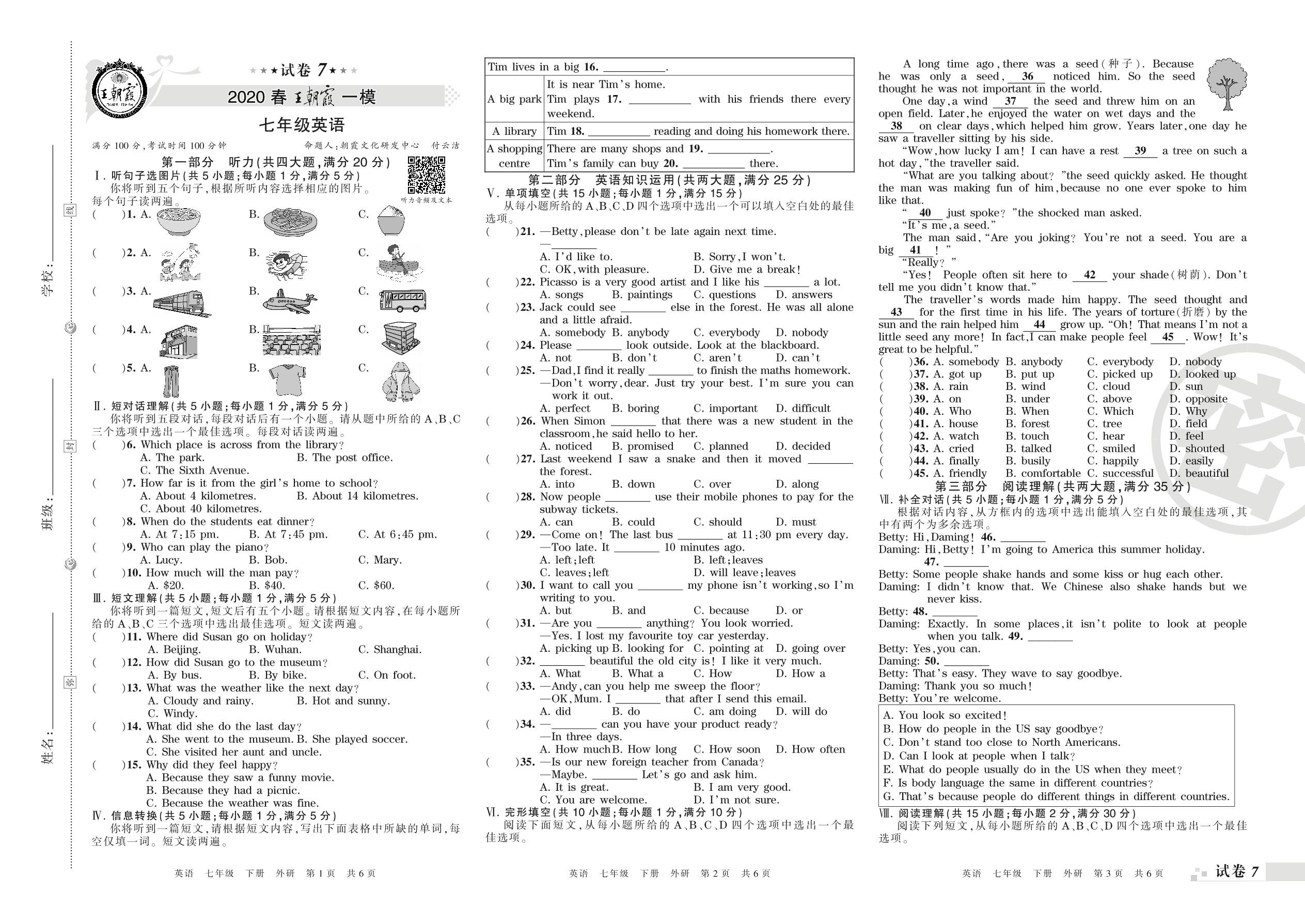 七年级英语外研版下册期末卷