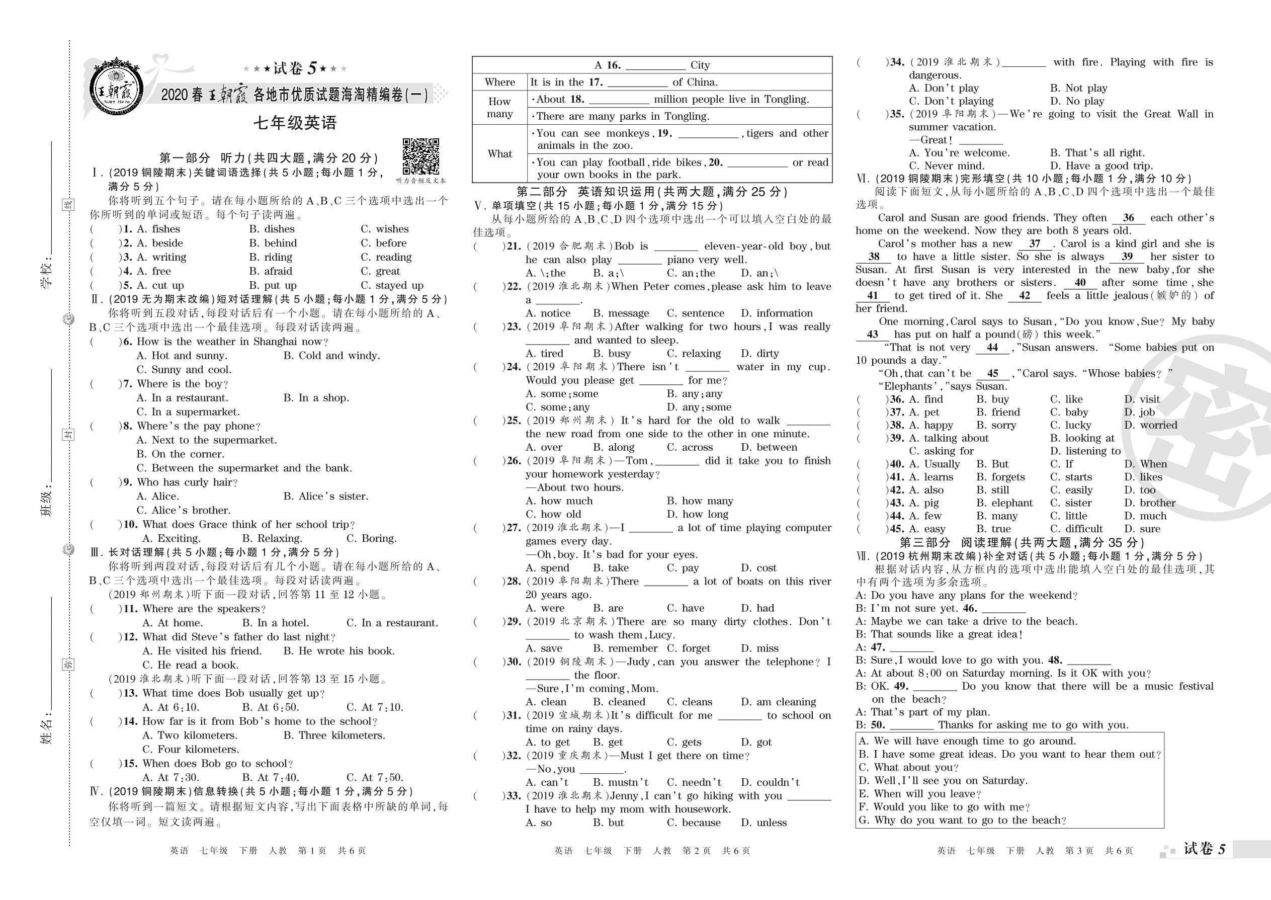 各地市优质试题海淘精编卷(一)七年级下册英语(人教版)_R210807191658【5】