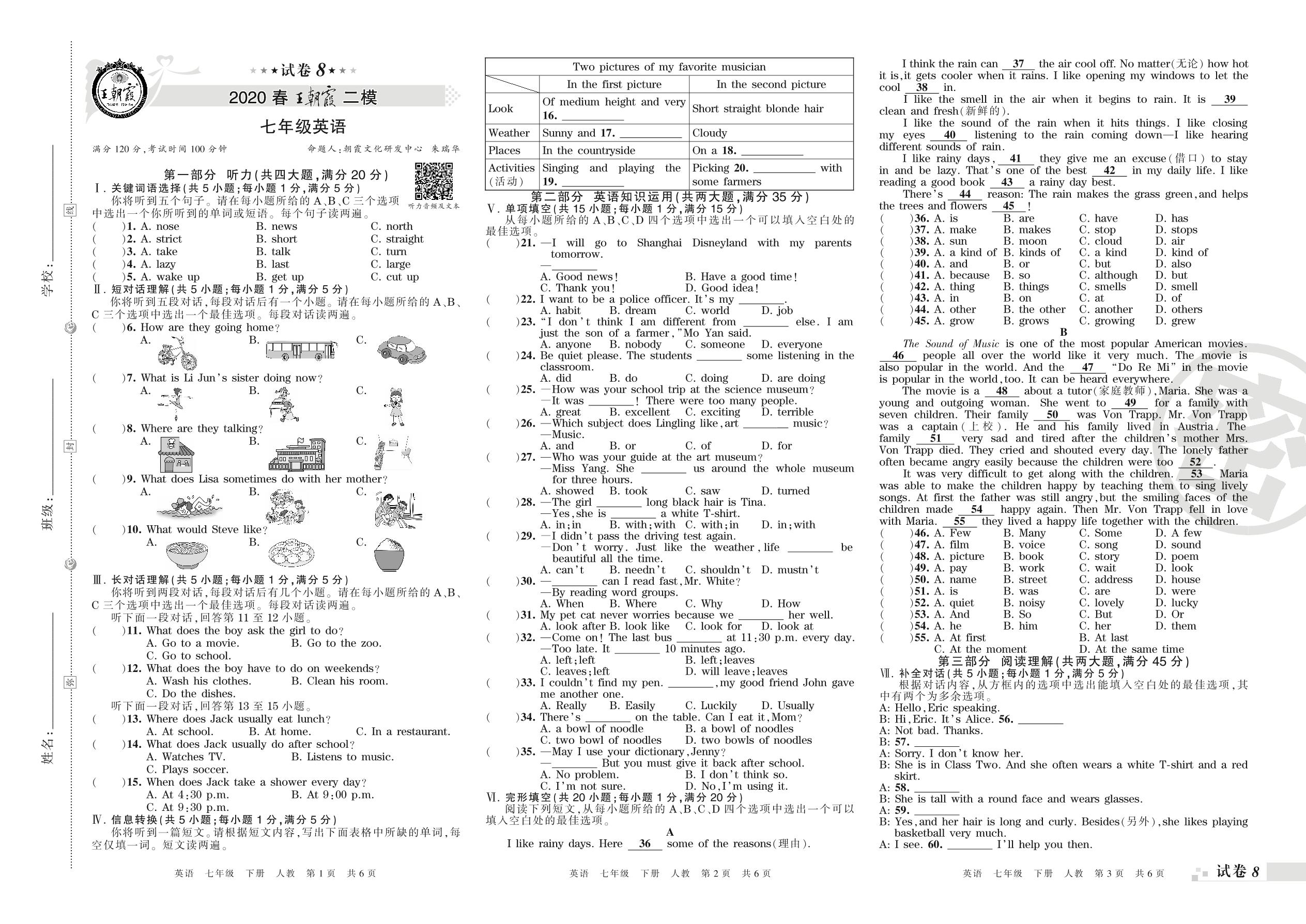 王朝霞期末模拟卷七年级下册英语(人教版)_R210807191726【8】