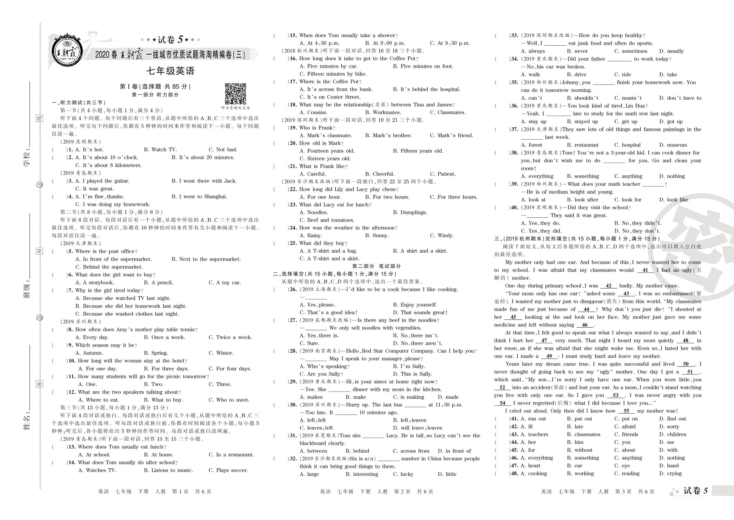 一线城市优质试题海淘精编卷(三)七年级下册英语(人教版)_R210807191742【5】
