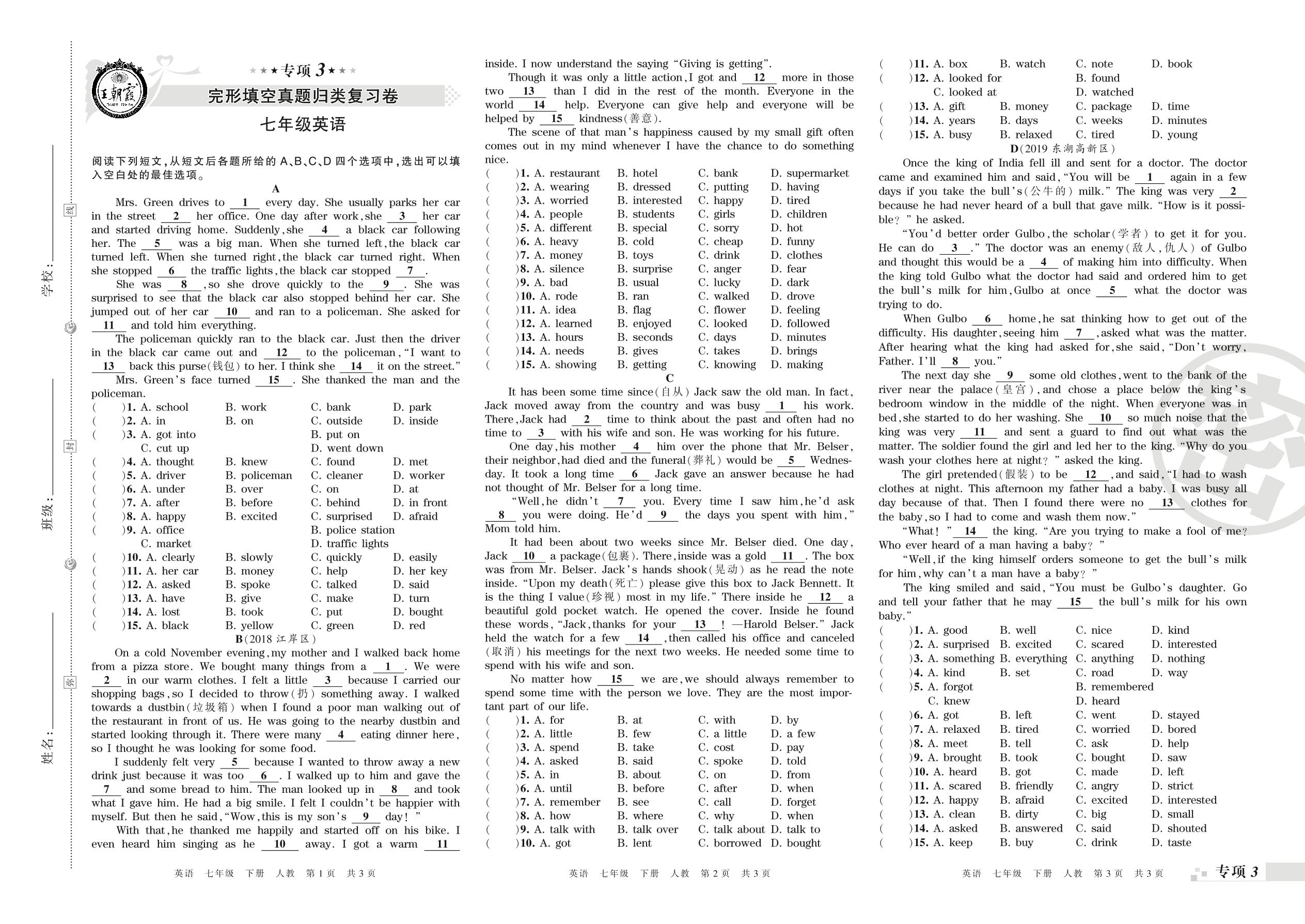 王朝霞期末专项卷——完形填空、阅读理解(一)真题归类复习卷七年级下册英语(人教版)_R210807191821【0】