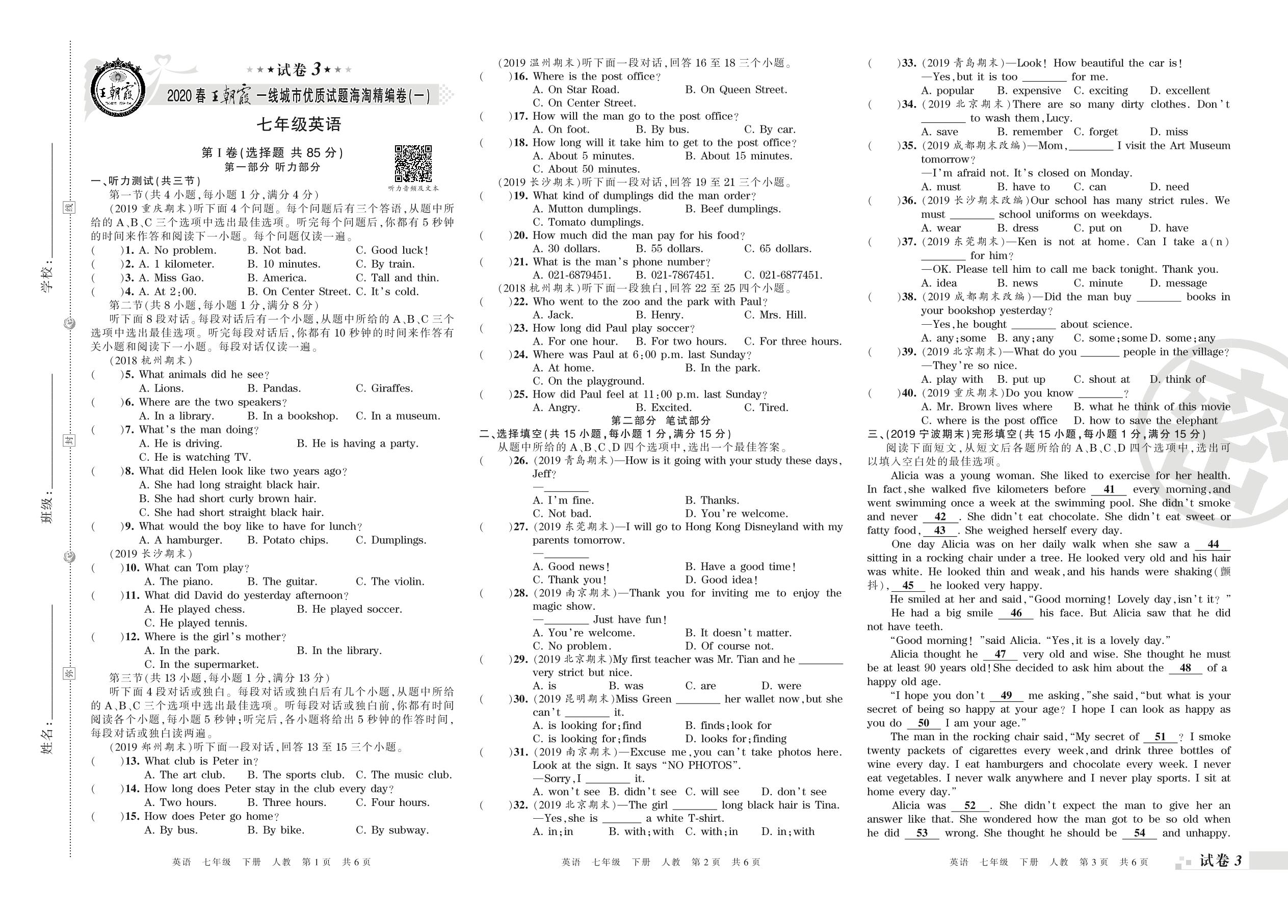 一线城市优质试题海淘精编卷(一)七年级下册英语(人教版)_R210807191855【3】
