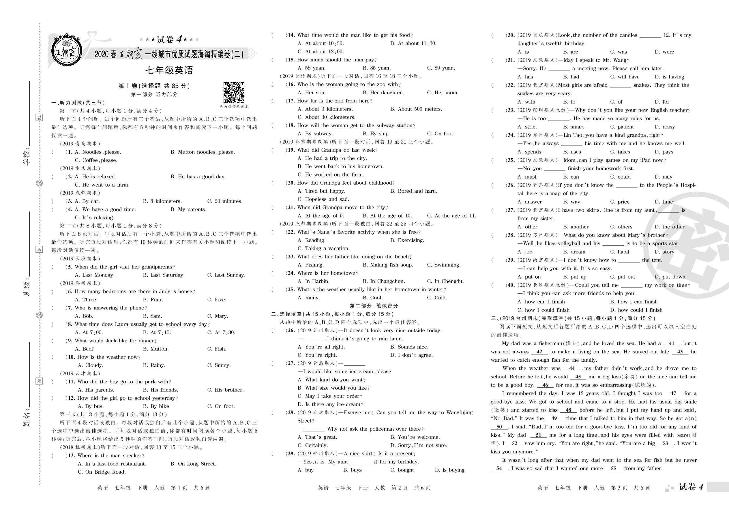 一线城市优质试题海淘精编卷(二)七年级下册英语(人教版)_R210807191904【4】