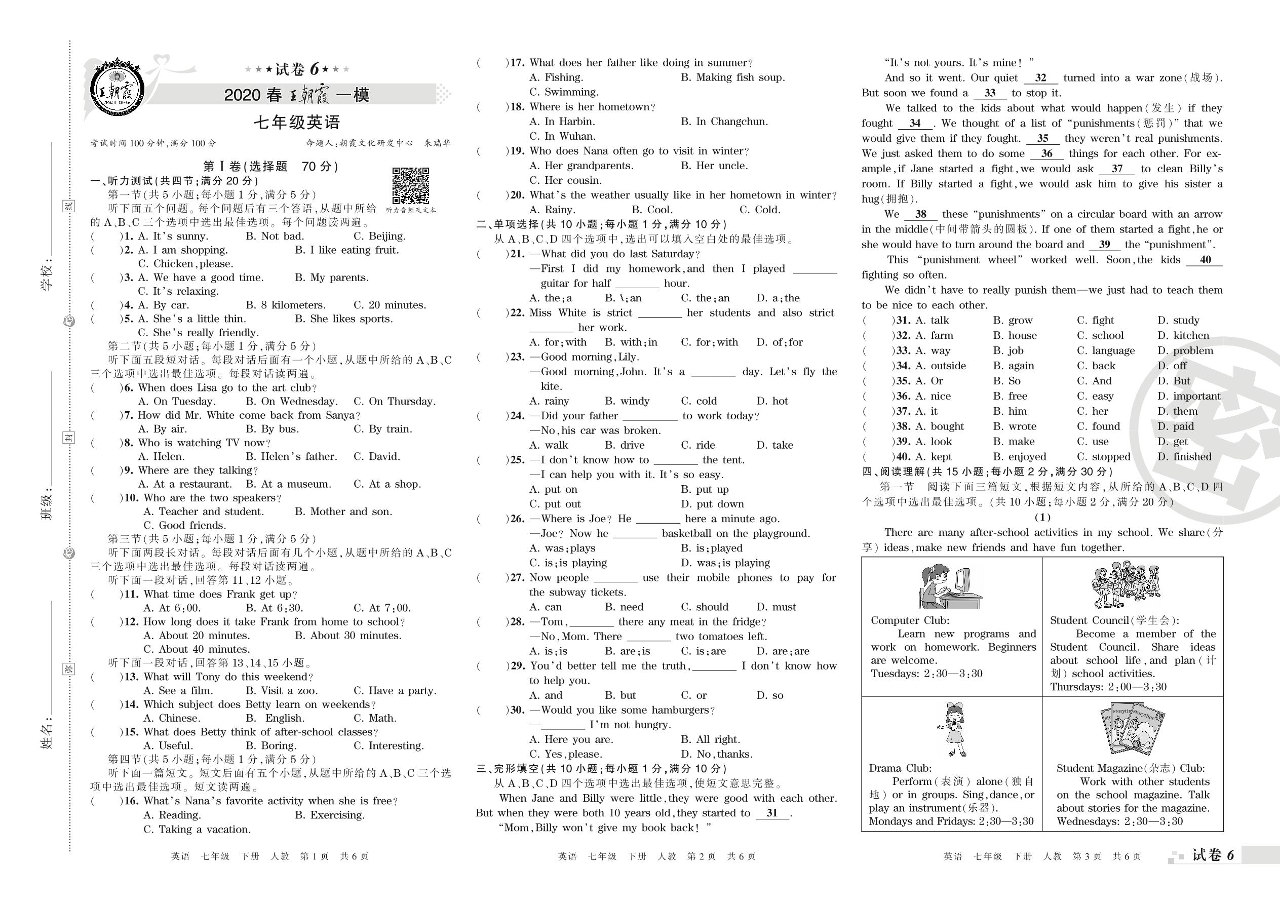 王朝霞期末模拟卷七年级下册英语(人教版)_R210807192027【6】