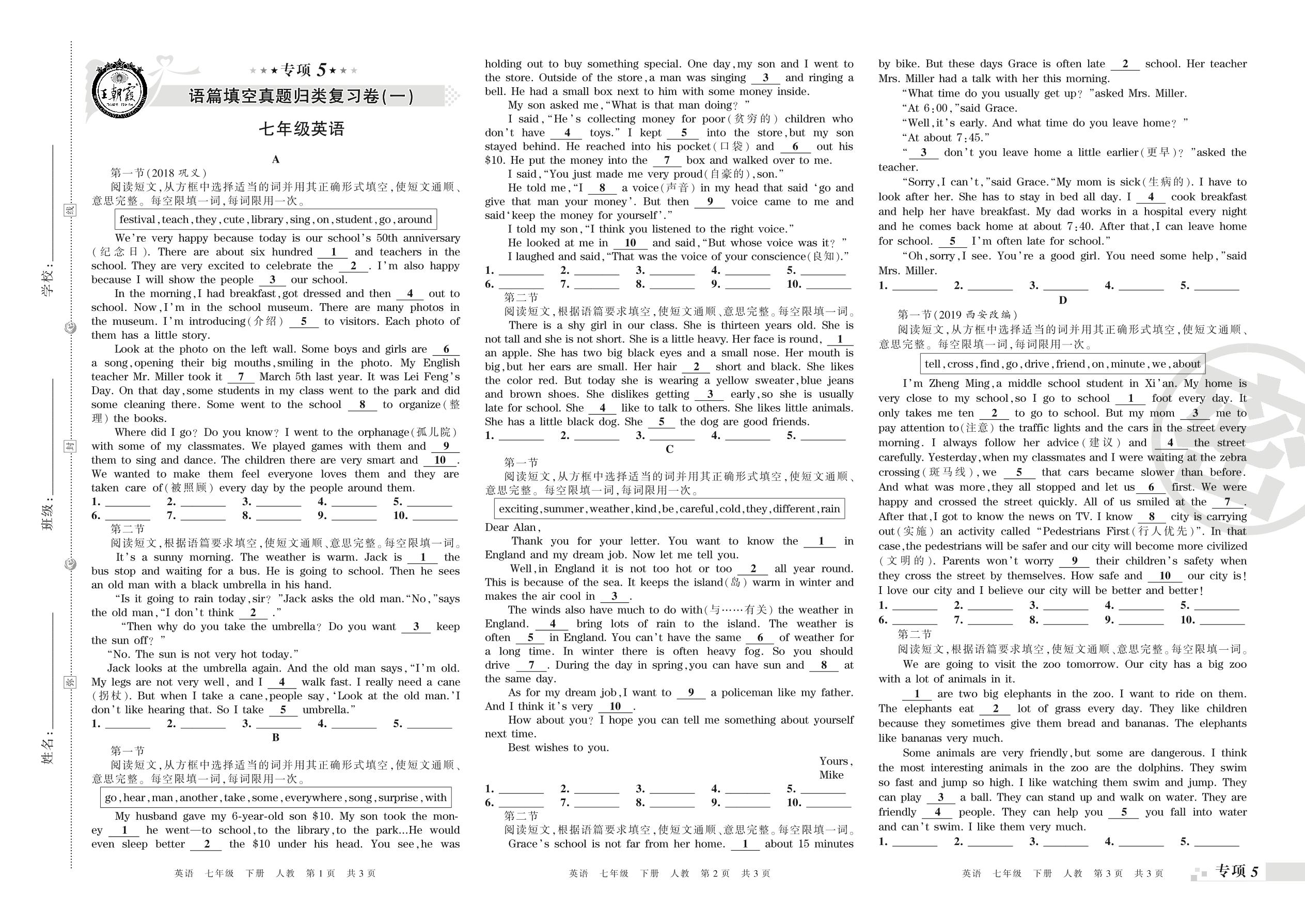 王朝霞期末专项卷——语篇填空(一)(二)真题归类复习卷七年级下册英语(人教版)_R210807192059【0】