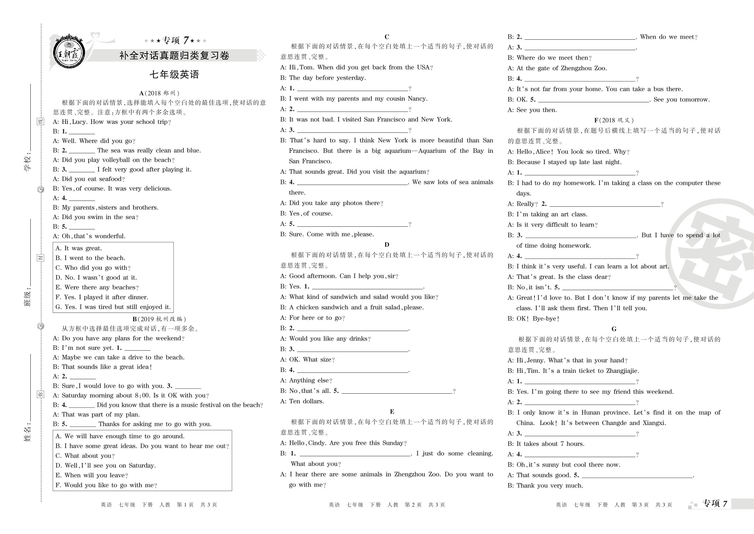 王朝霞期末专项卷——补全对话、书面表达真题归类复习卷七年级下册英语(人教版)_R210807192107【0】