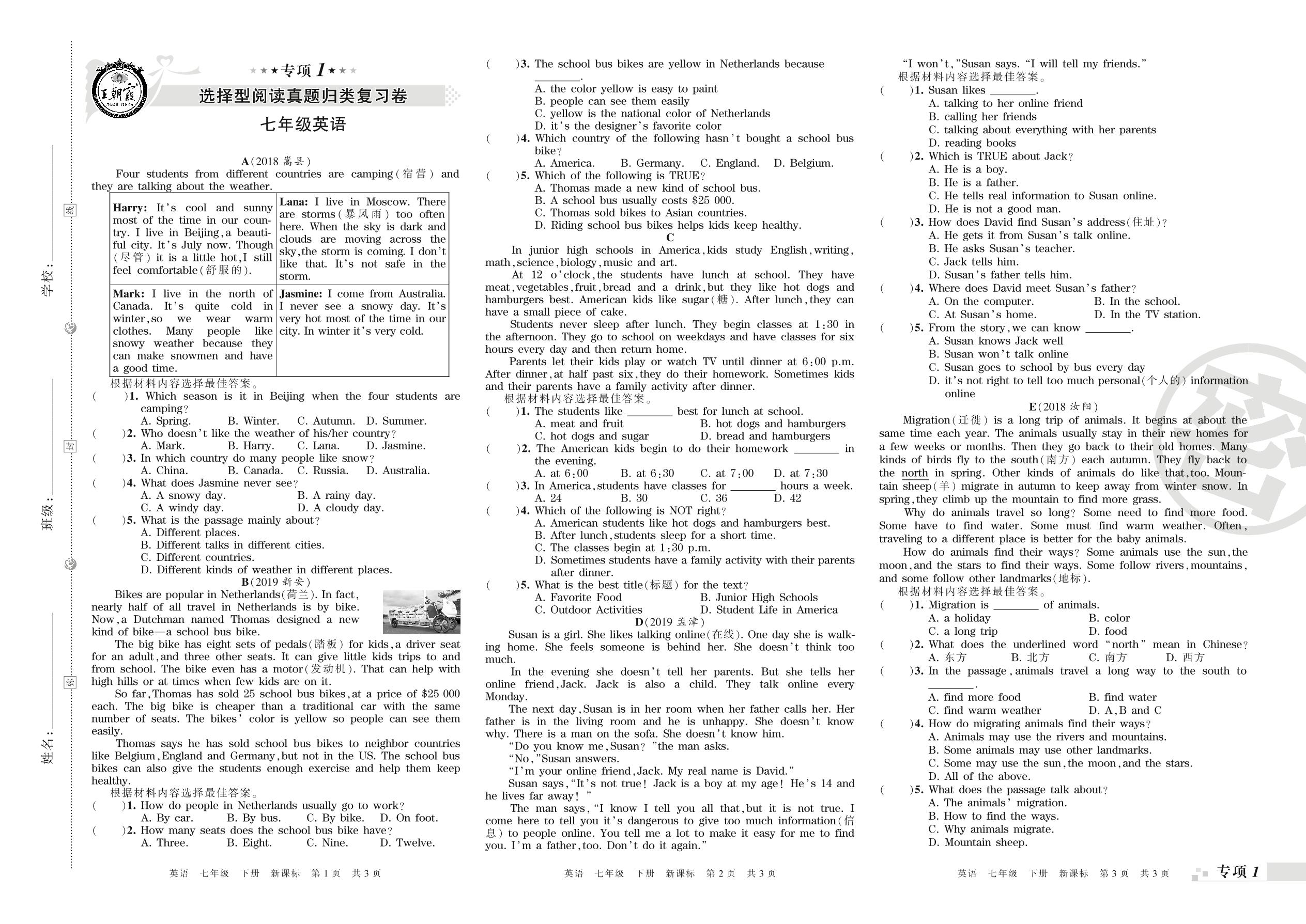 王朝霞期末专项卷——选择型阅读、任务型阅读真题归类复习卷七年级下册英语(新课版)_R210807192239【0】