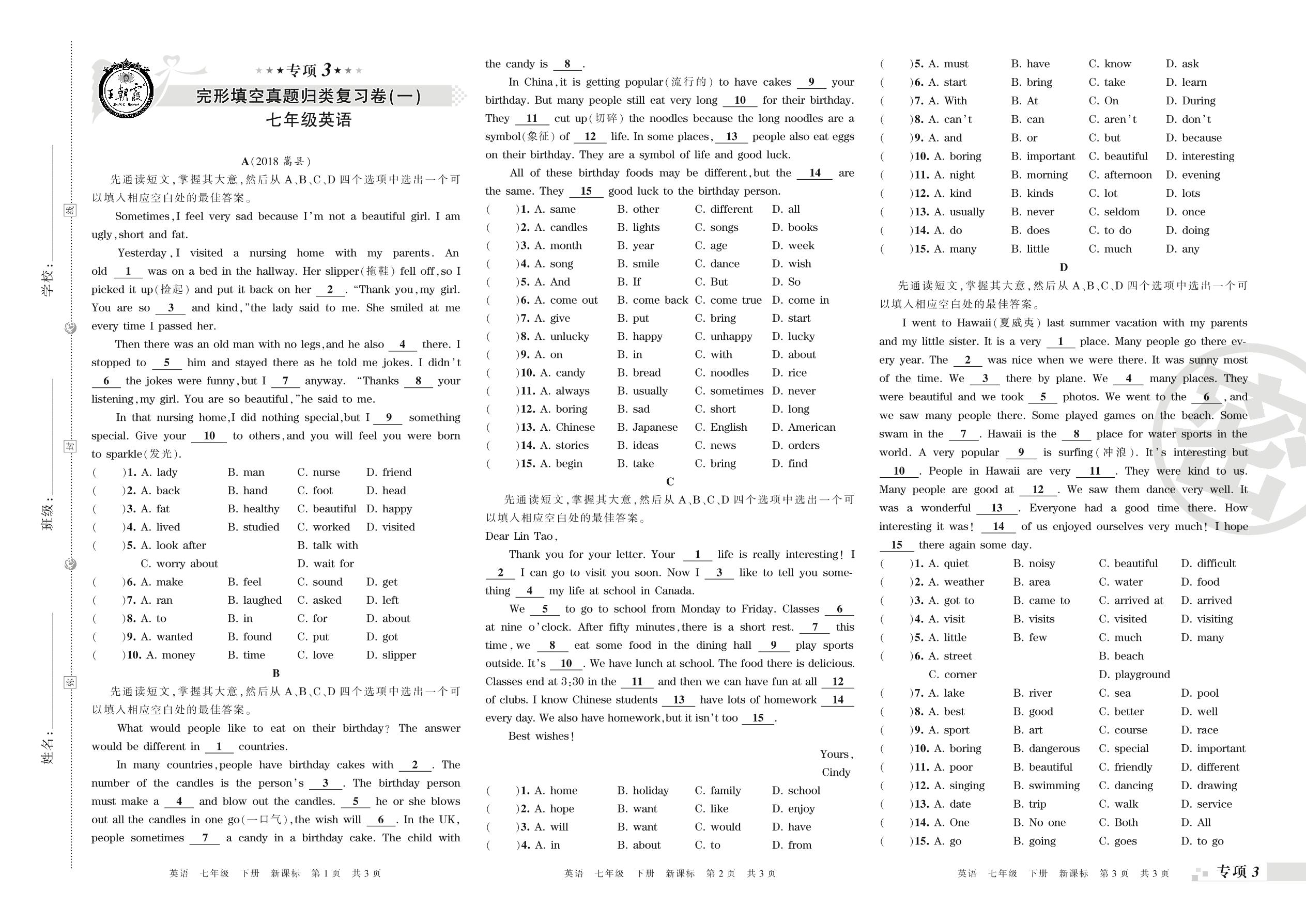王朝霞期末专项卷——完形填空(一)(二)真题归类复习卷七年级下册英语(新课版)_R210807192255【0】