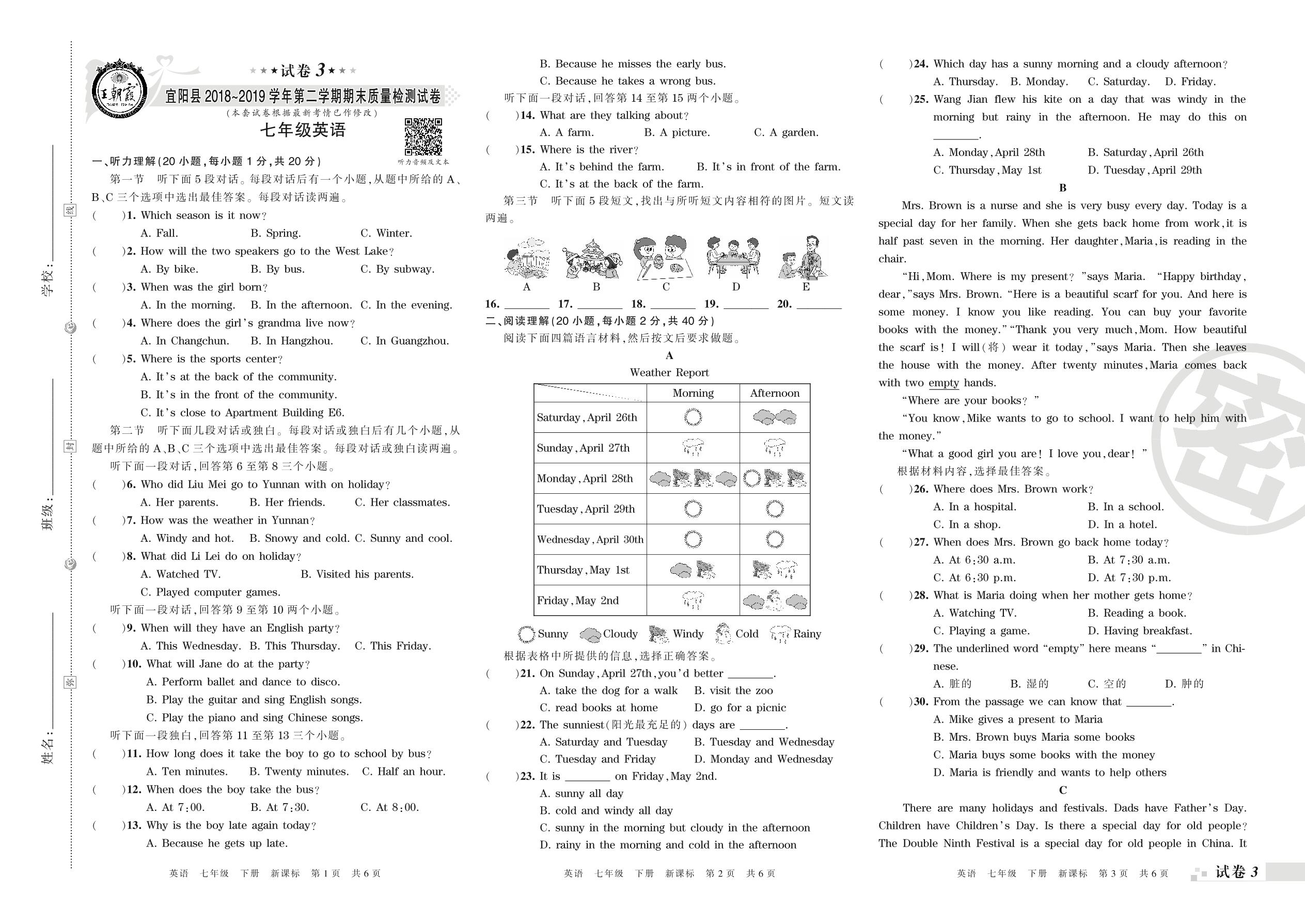 2018-2019学年第二学期洛阳市宜阳县七年级英语试卷(新课版)【3】