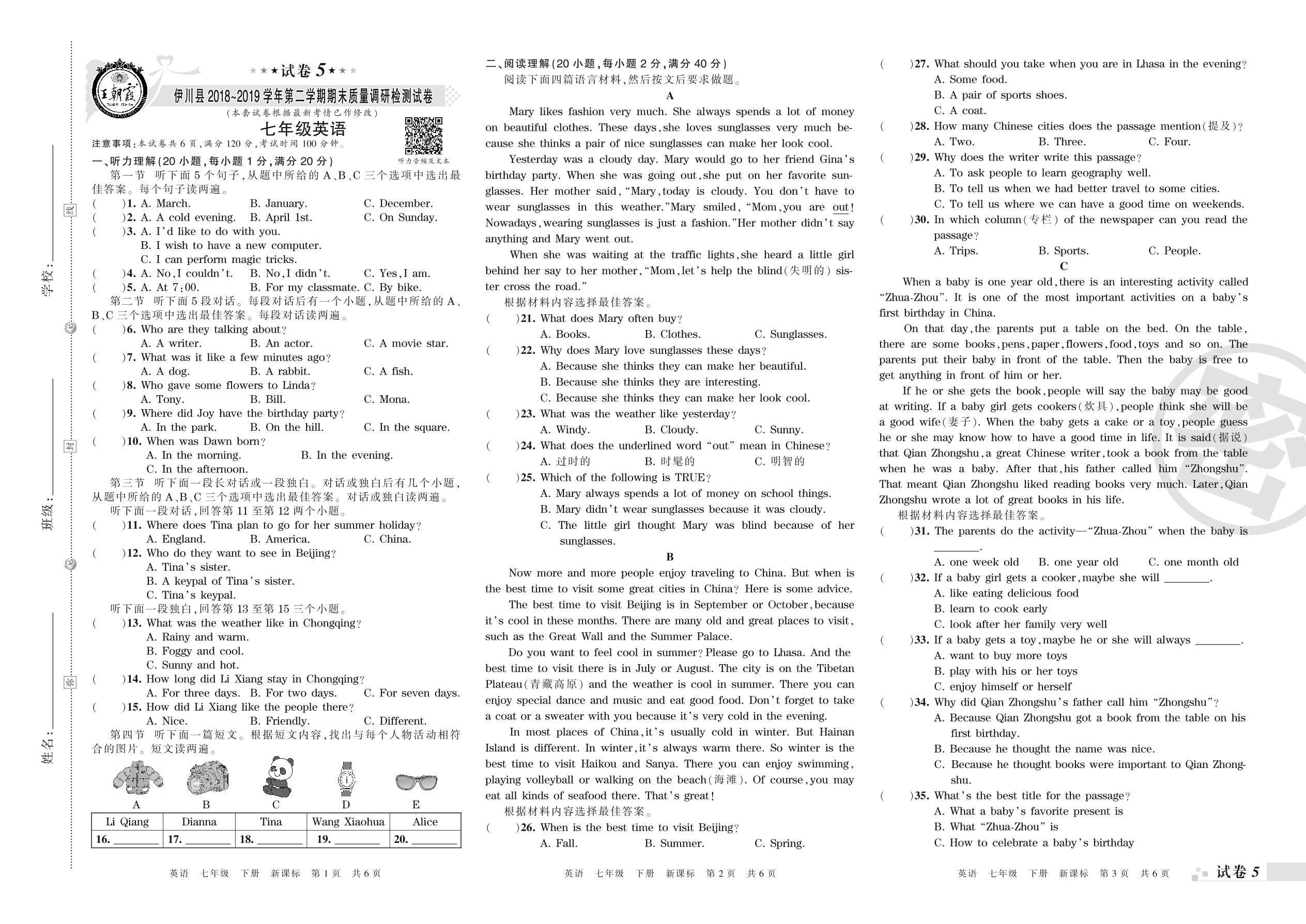 2018-2019学年第二学期洛阳市伊川县七年级英语试卷(新课版)【5】