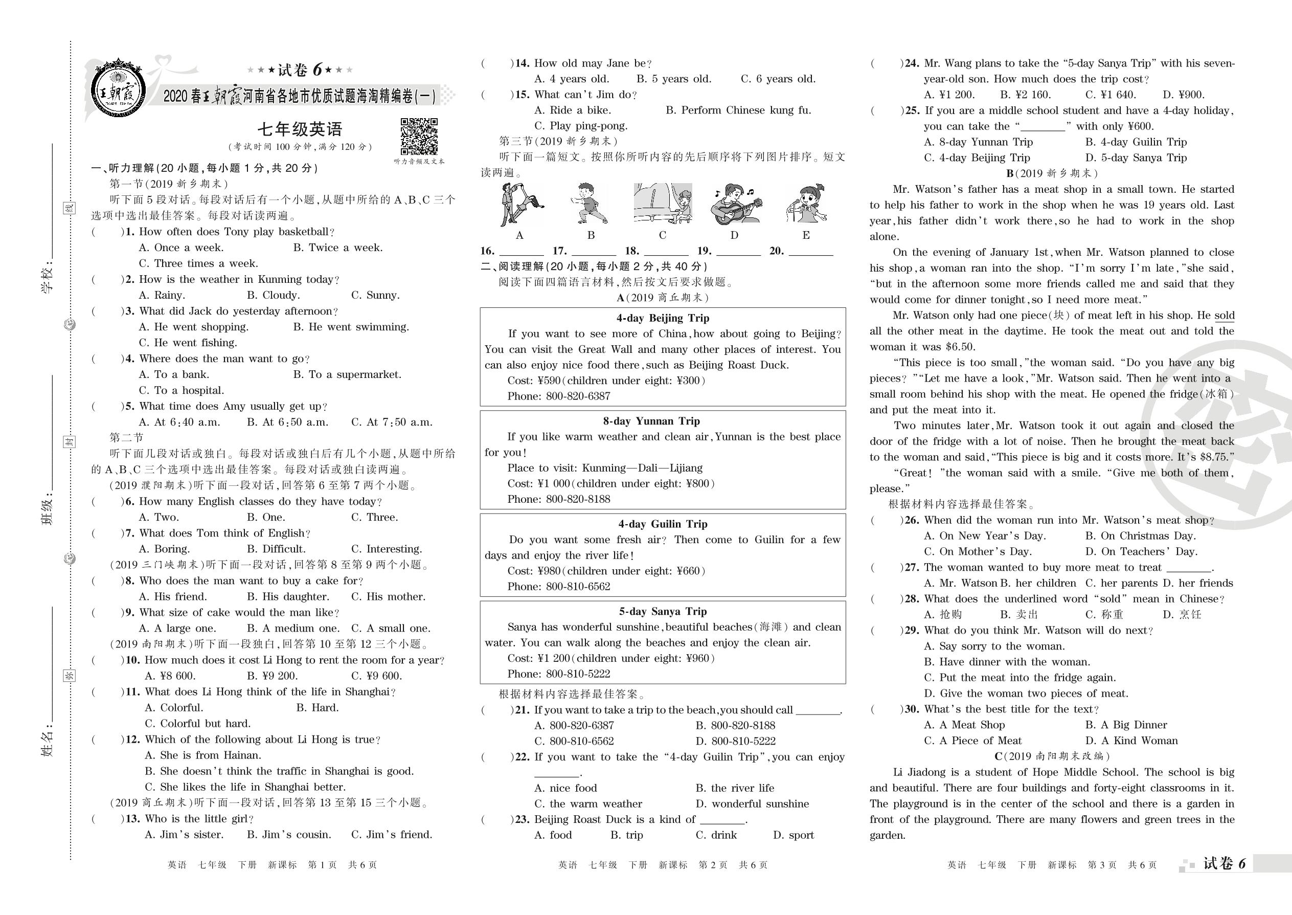 河南省各地市优质试题海淘精编卷(一)七年级下册英语(新课版)_R210807192450【6】