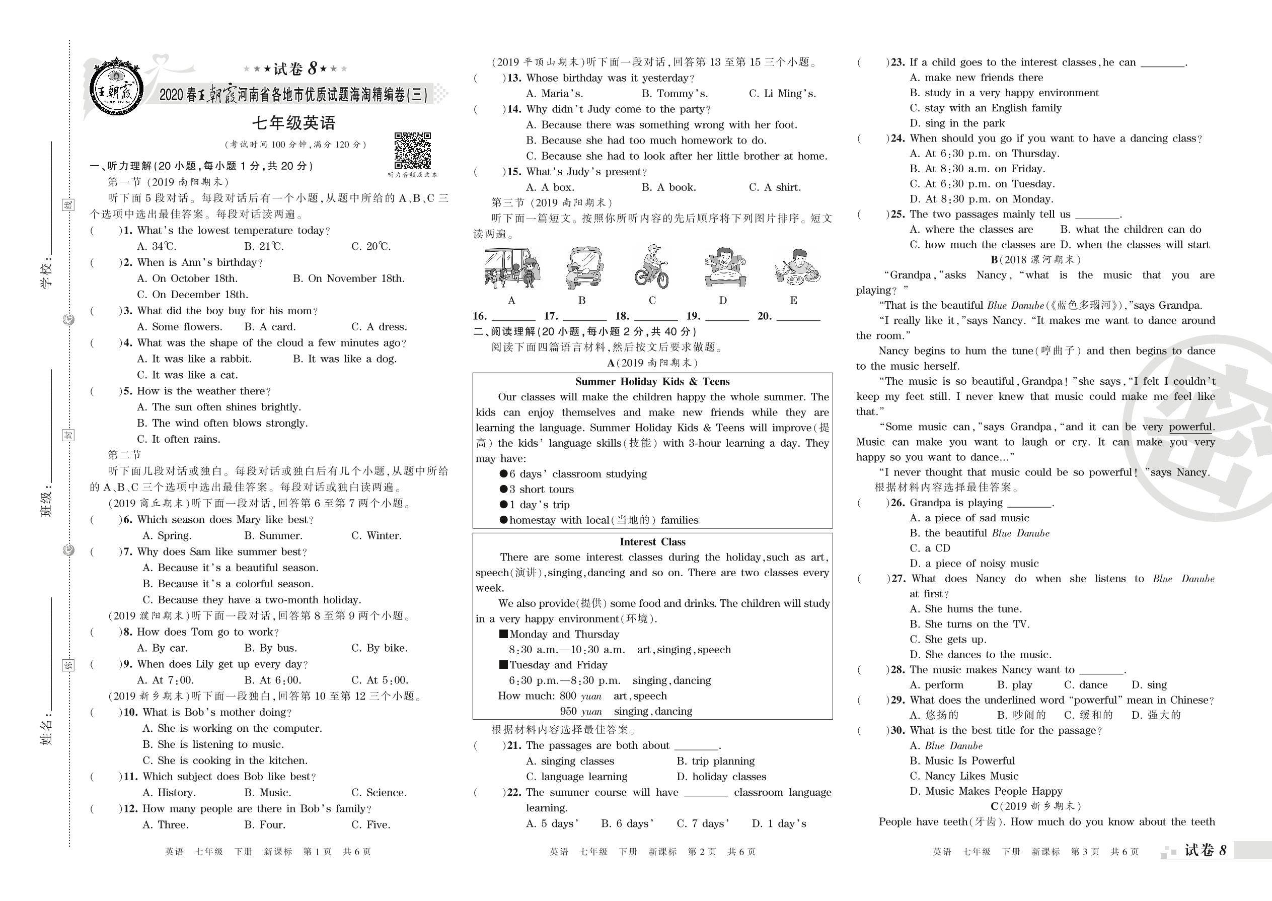 河南省各地市优质试题海淘精编卷(一)七年级下册英语(新课版)_R210807192533【8】