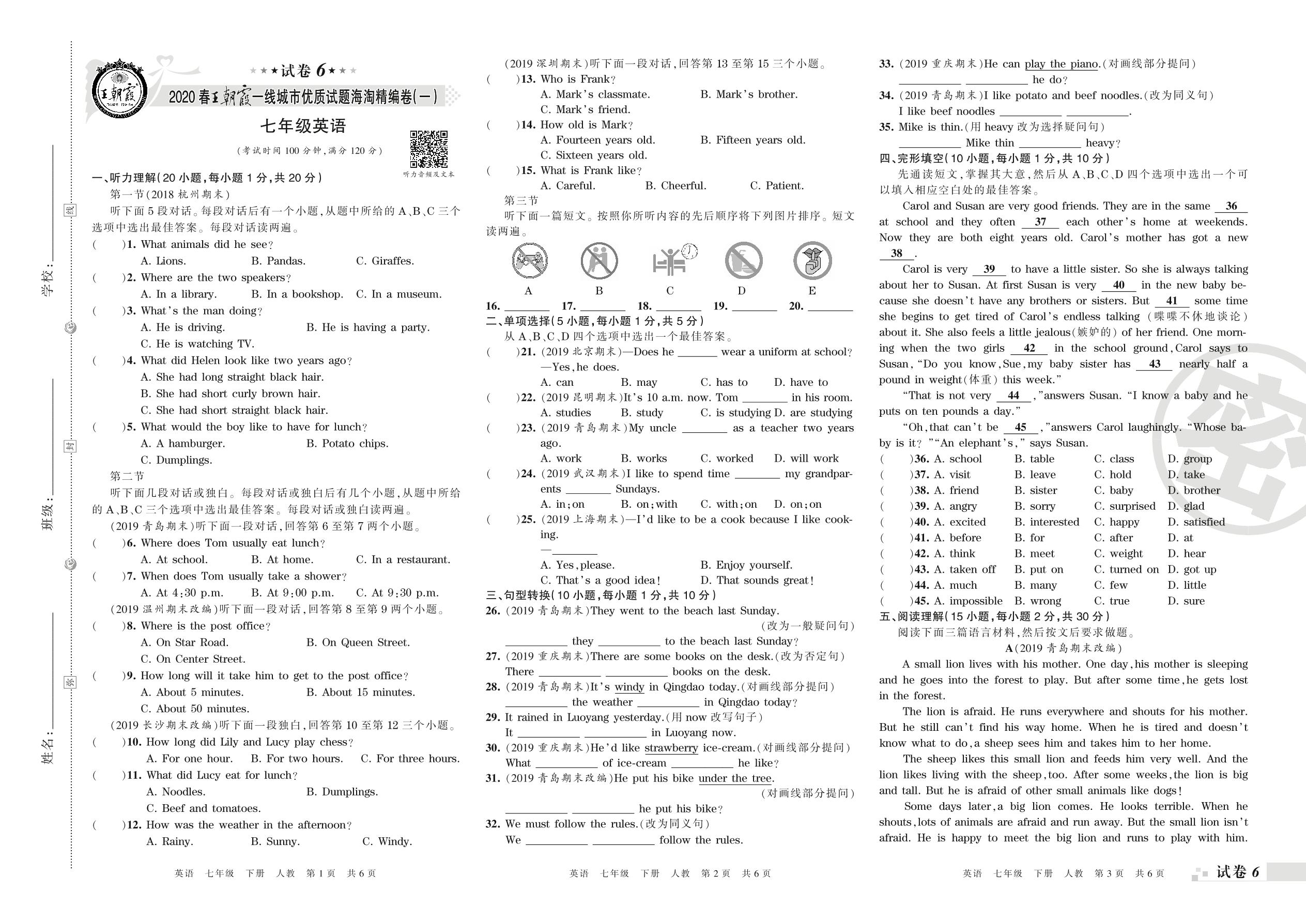 一线城市优质试题海淘精编卷(一)七年级下册英语(人教版)_R210807192930【6】