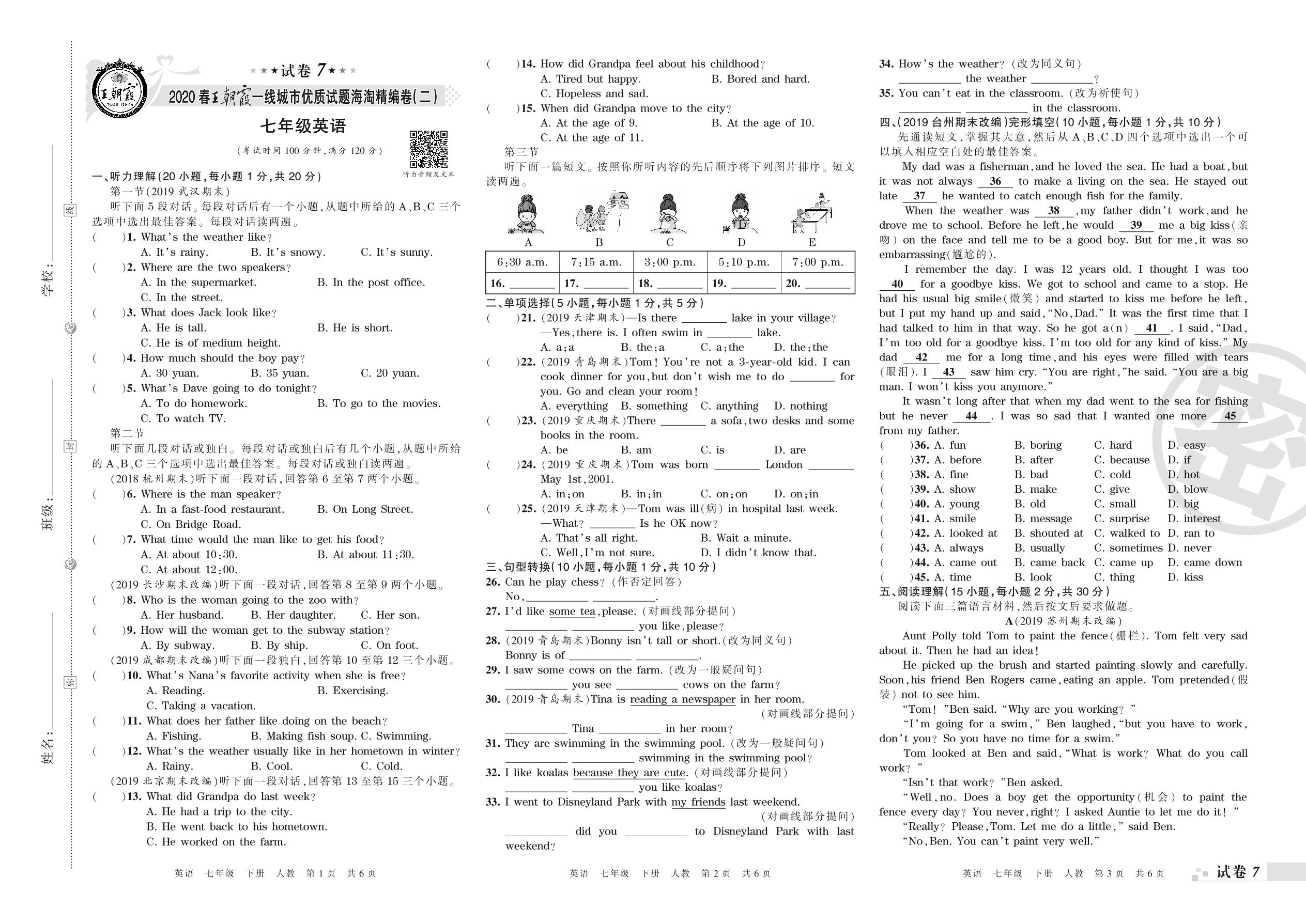 一线城市优质试题海淘精编卷(二)七年级下册英语(人教版)_R210807192950【7】