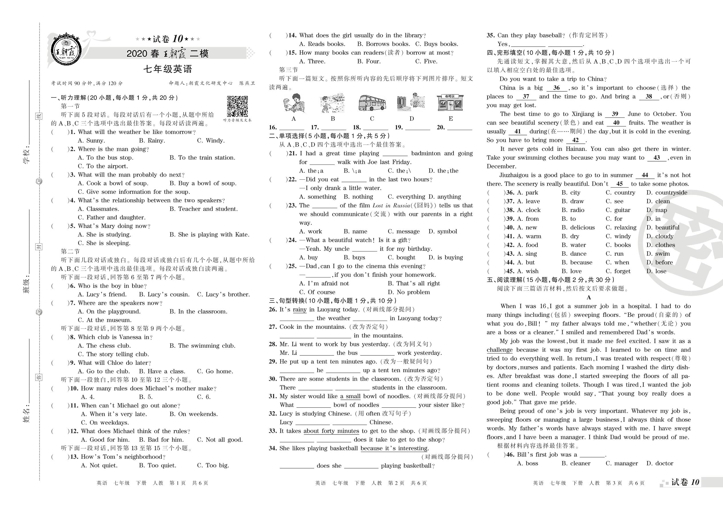 王朝霞期末模拟卷七年级下册英语(人教版)_R210807193104【10】