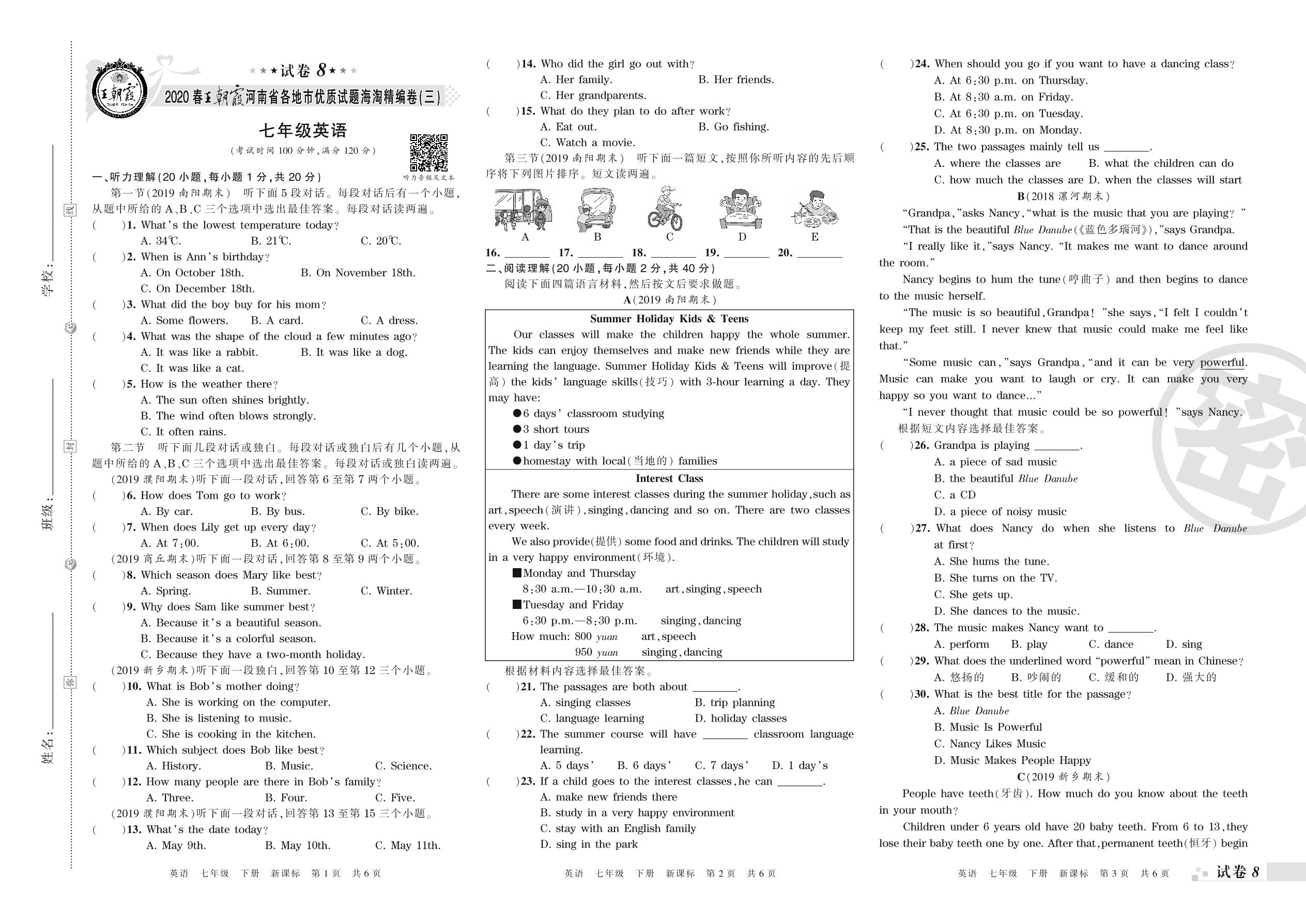 河南省各地市优质试题海淘精编卷(三)七年级下册英语(新课版)【8】