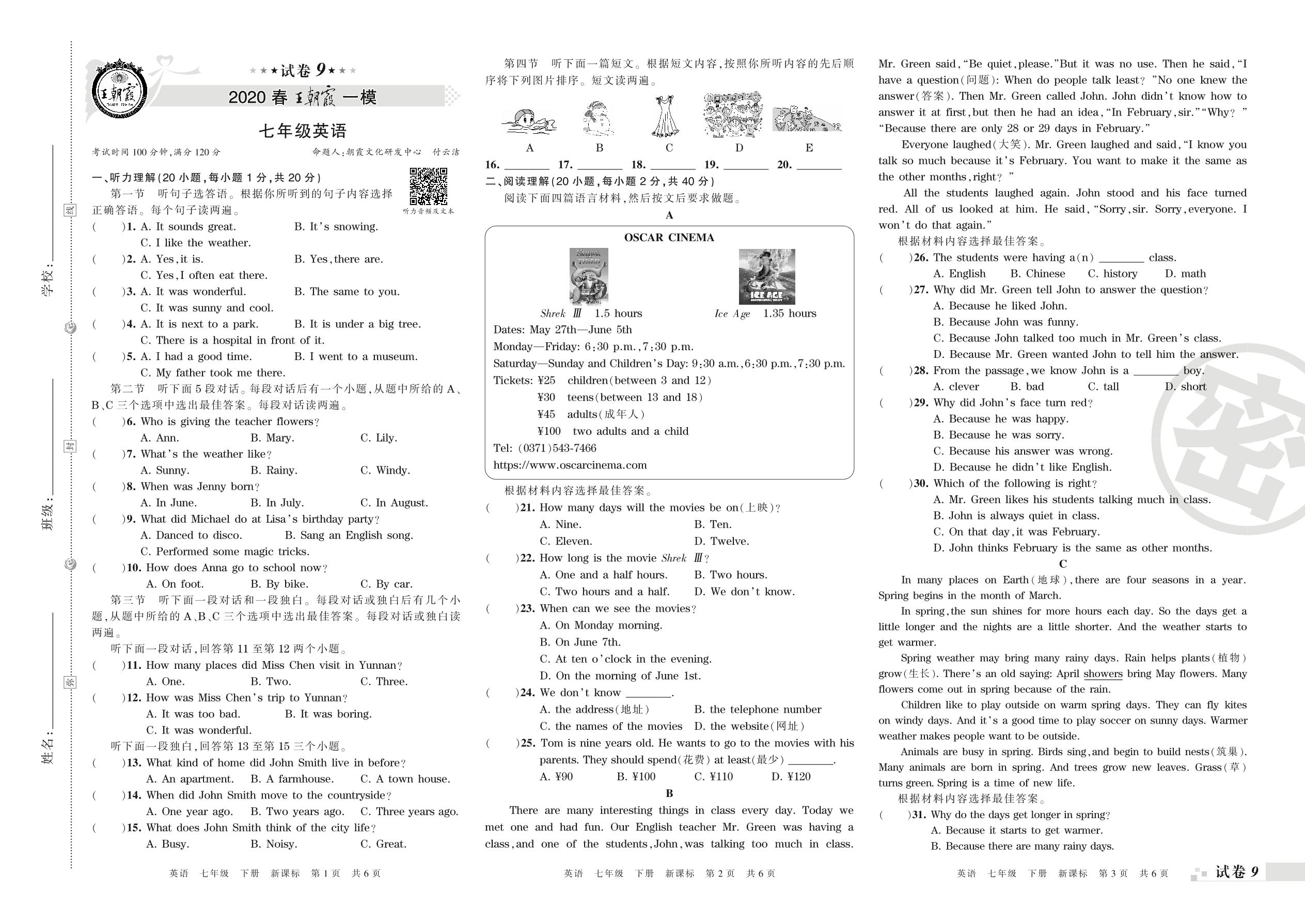 王朝霞期末模拟卷七年级下册英语(新课版)_R210807193320【9】