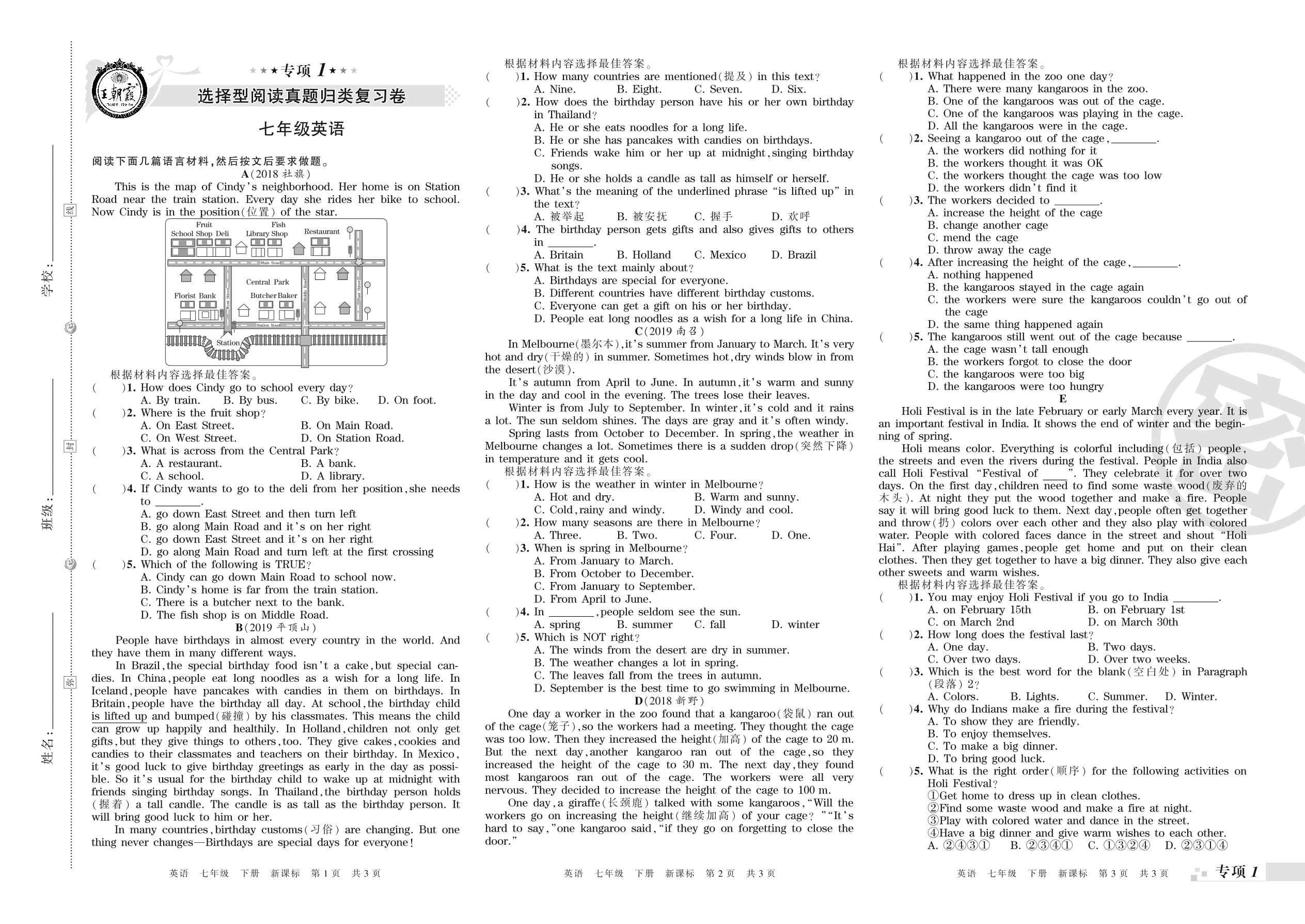 王朝霞期末专项卷——选择型阅读、任务型阅读真题归类复习卷七年级下册英语(新课版)_R210807193730【0】