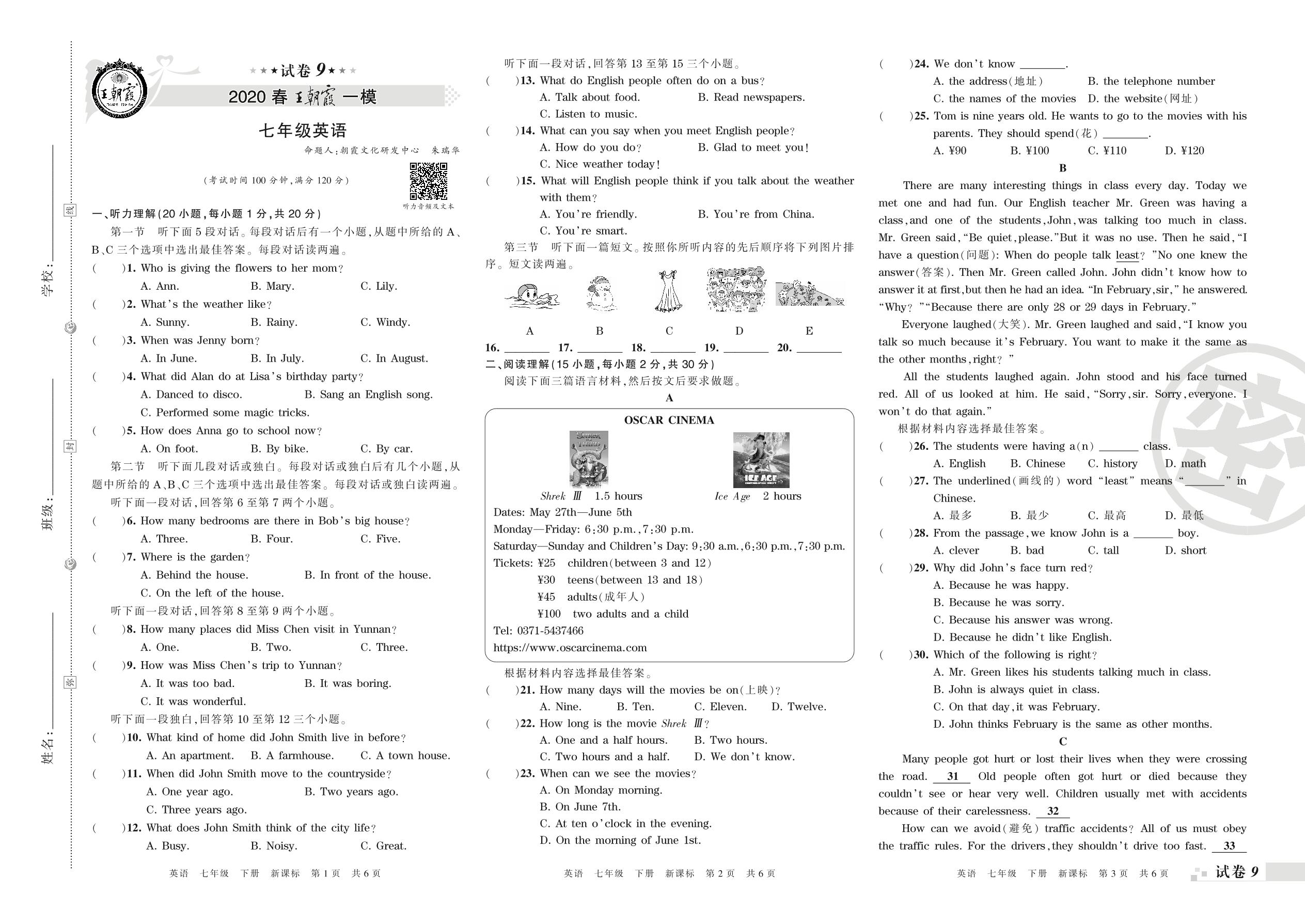 王朝霞期末模拟卷七年级下册英语(新课版)_R210807193851【9】