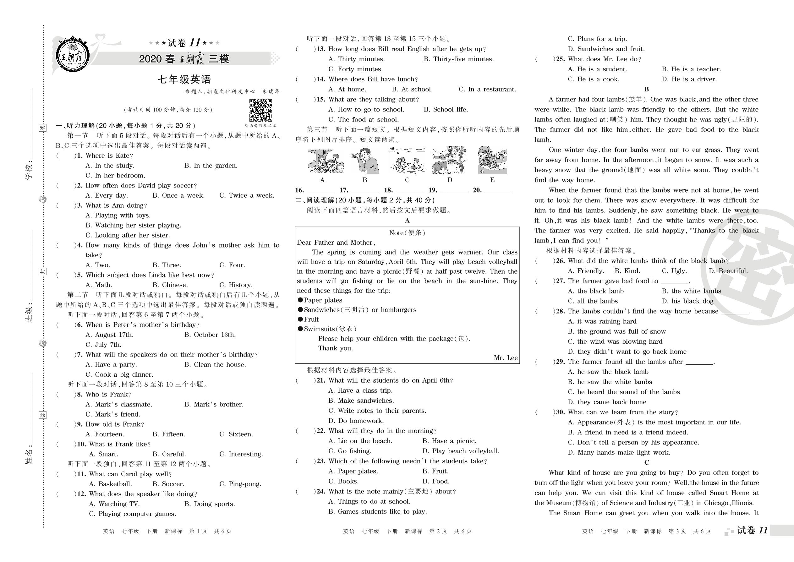 王朝霞期末模拟卷七年级下册英语(新课版)_R210807193907【11】