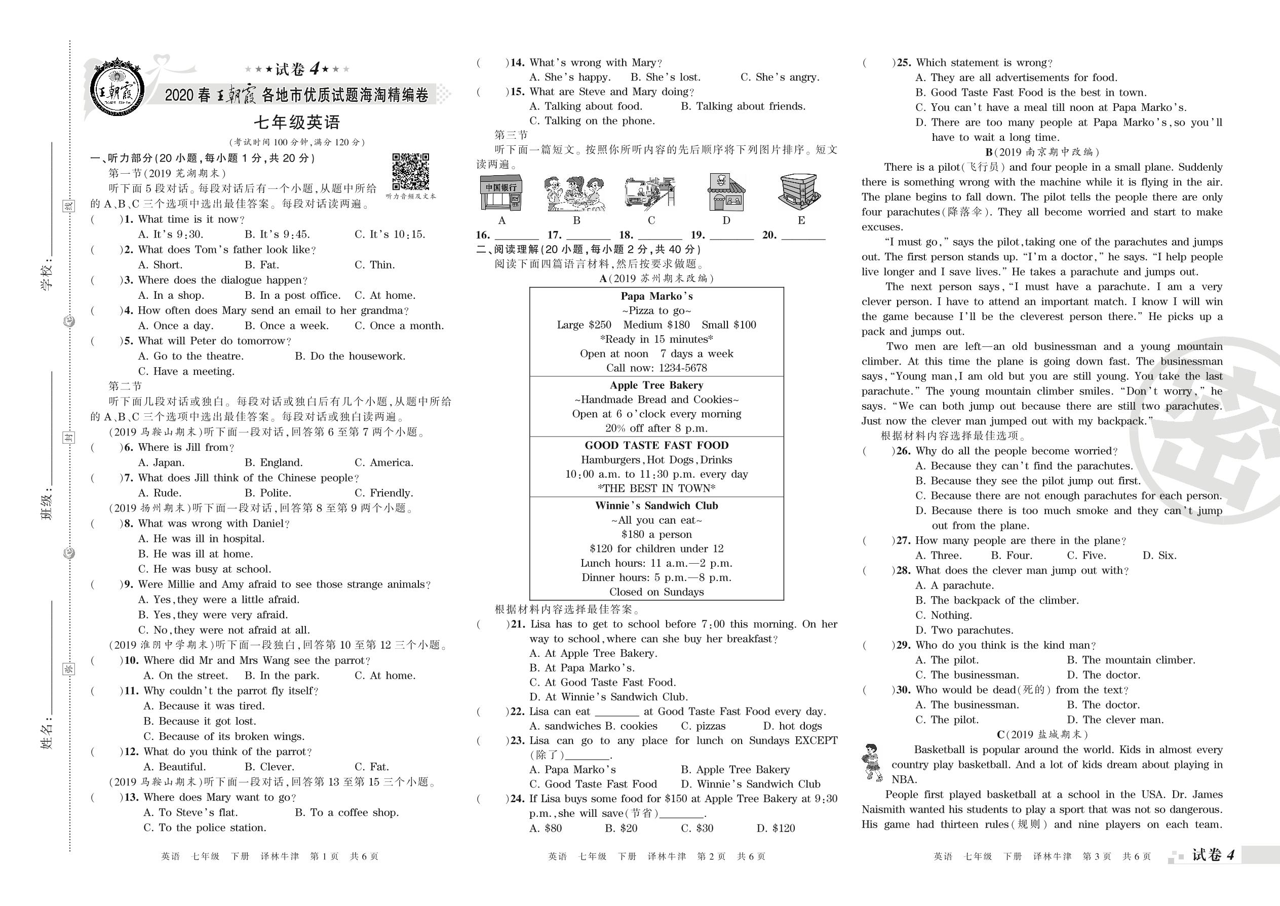 各地市优质试题海淘精编卷七年级下册英语(译林版)_R210807194012【4】