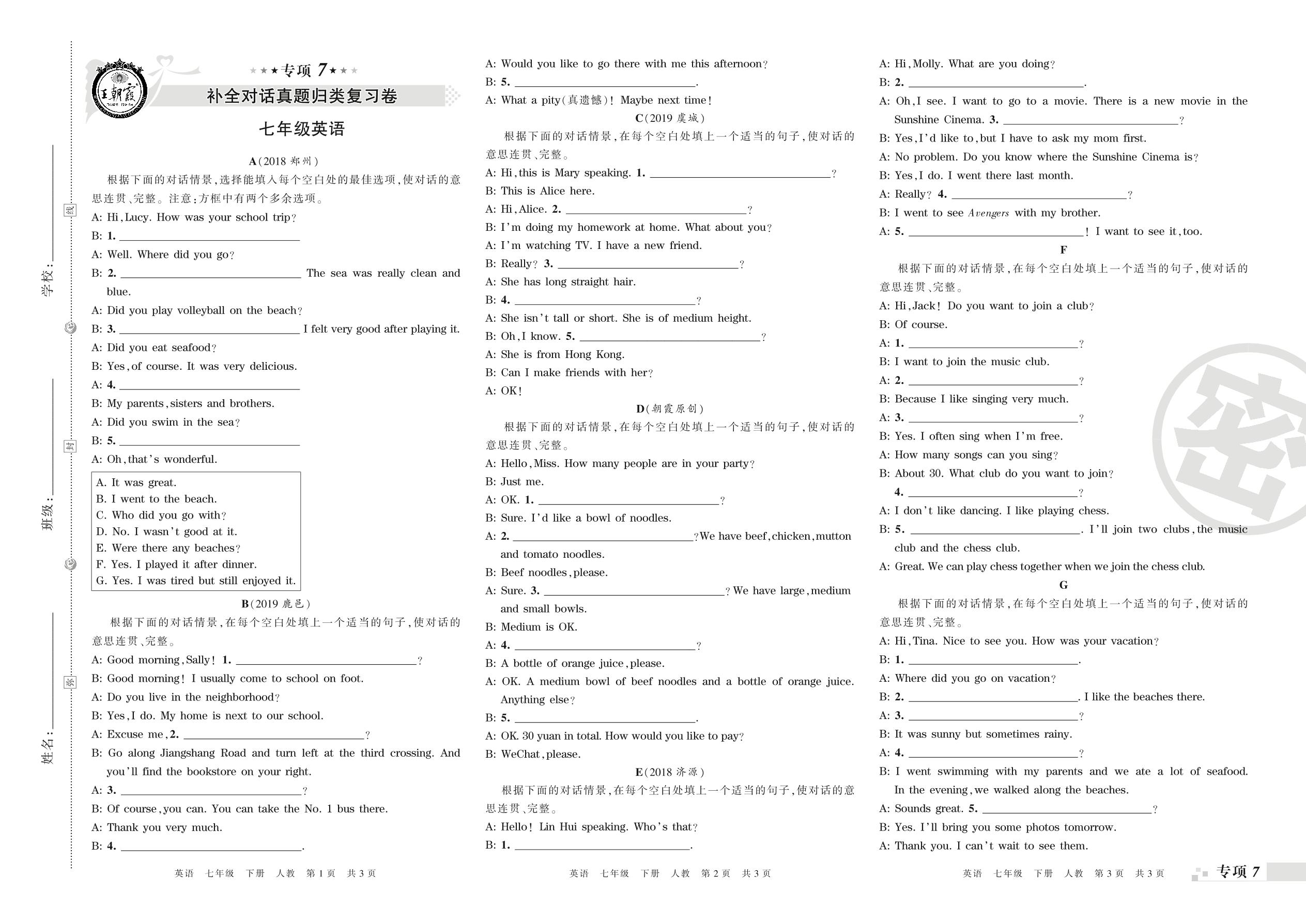 王朝霞期末专项卷——补全对话、书面表达真题归类复习卷七年级下册英语(人教版)_R210807194315【0】