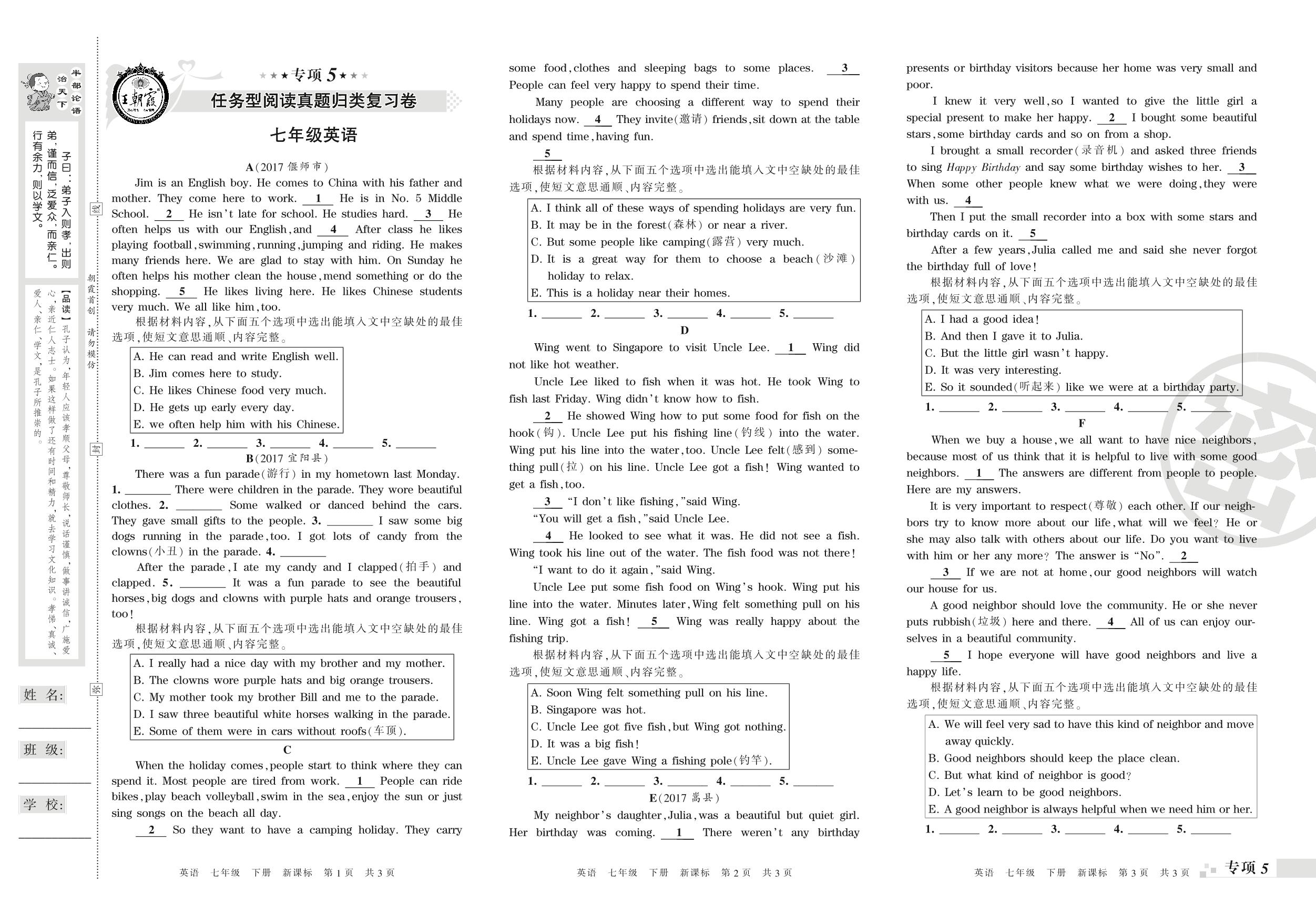 王朝霞期末专项卷——任务型阅读、词语运用真题归类复习卷七年级下册英语(新课版)_R210807194504【0】