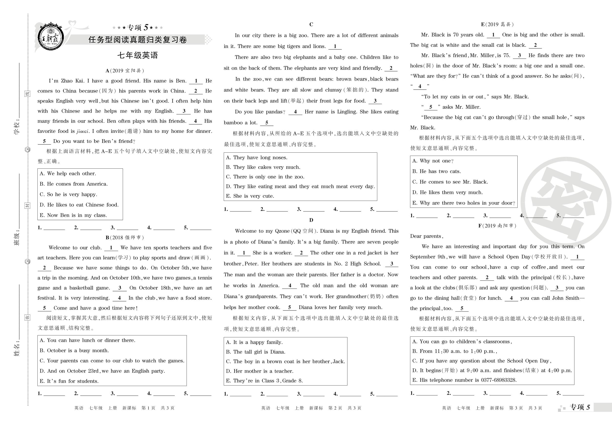 王朝霞期末专项卷——任务型阅读、词语运用真题归类复习七年级上册英语(新课版)_R210807195203【0】