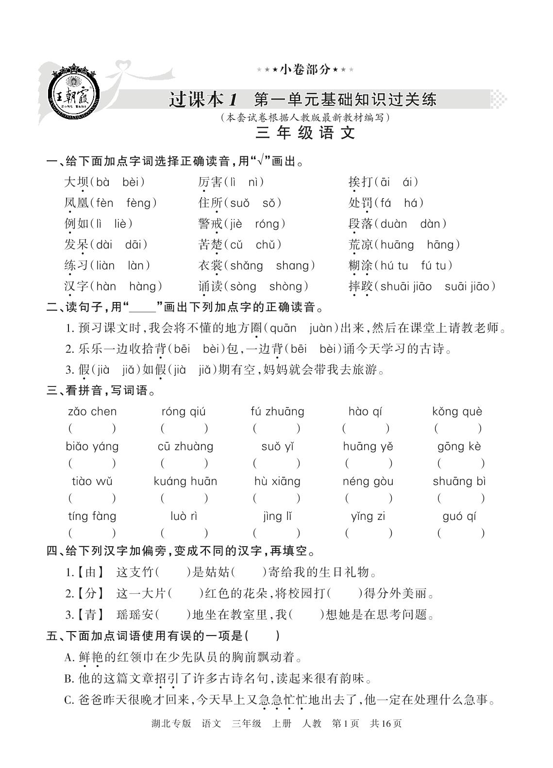 三年级语文人教版上册过课本