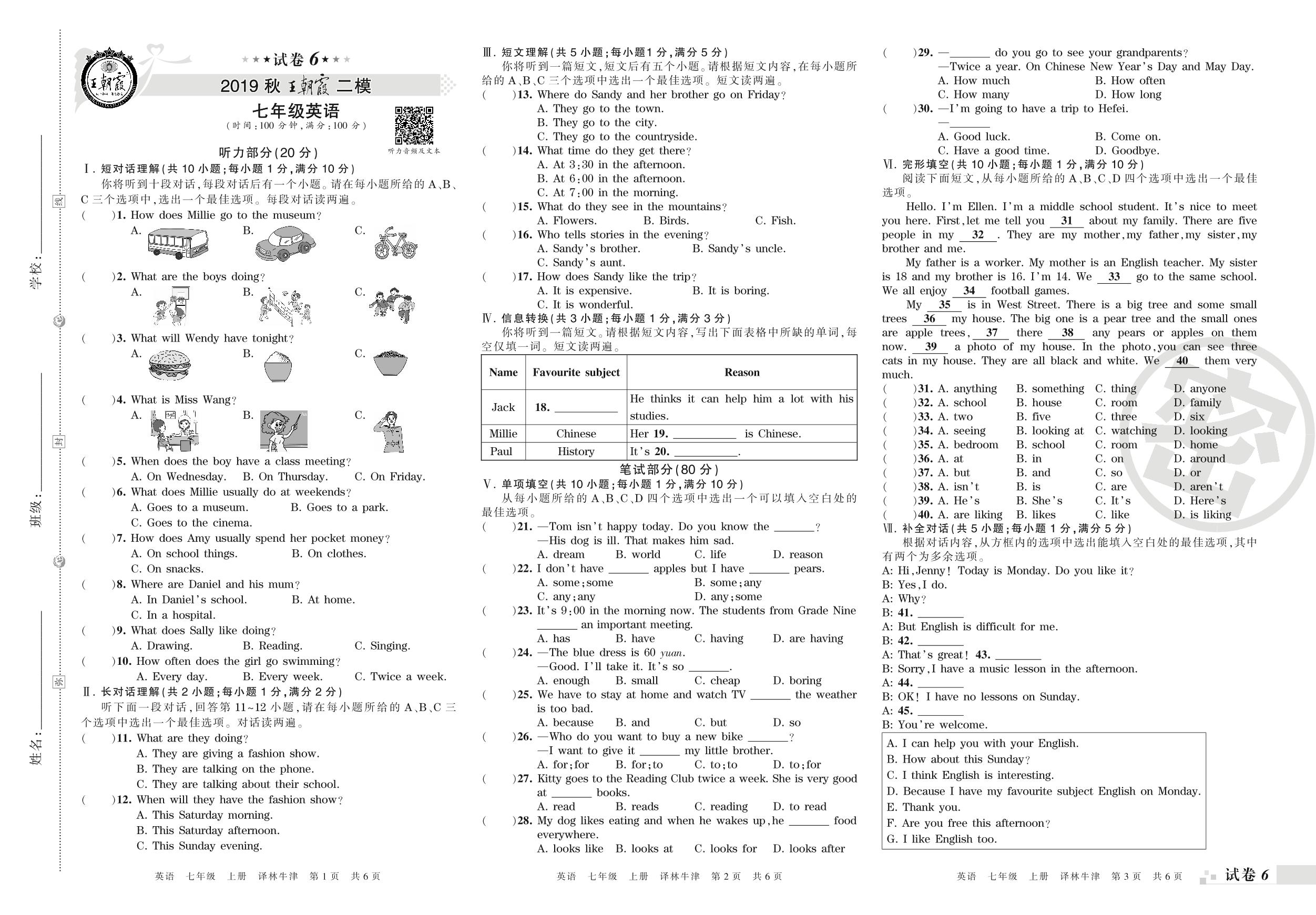 王朝霞期末模拟卷七年级上册英语(译林版)_R210807195633【6】