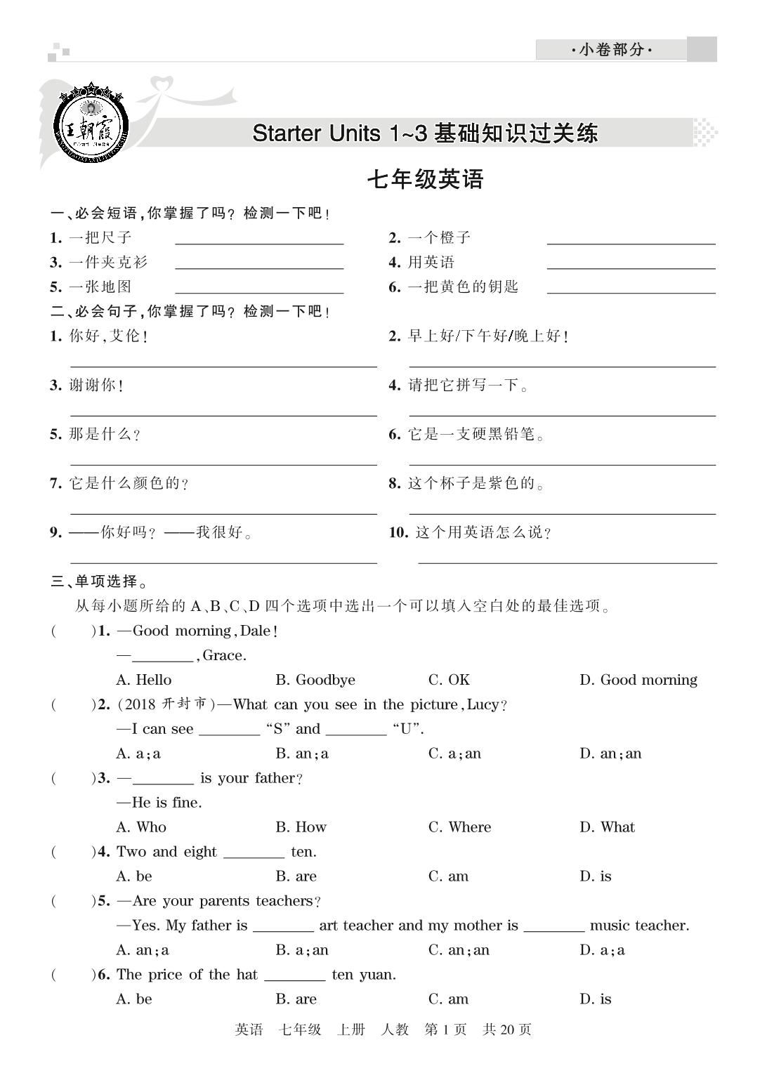 王朝霞期末小卷——基础知识过关练七年级上册英语(人教版)_R210807195650【0】