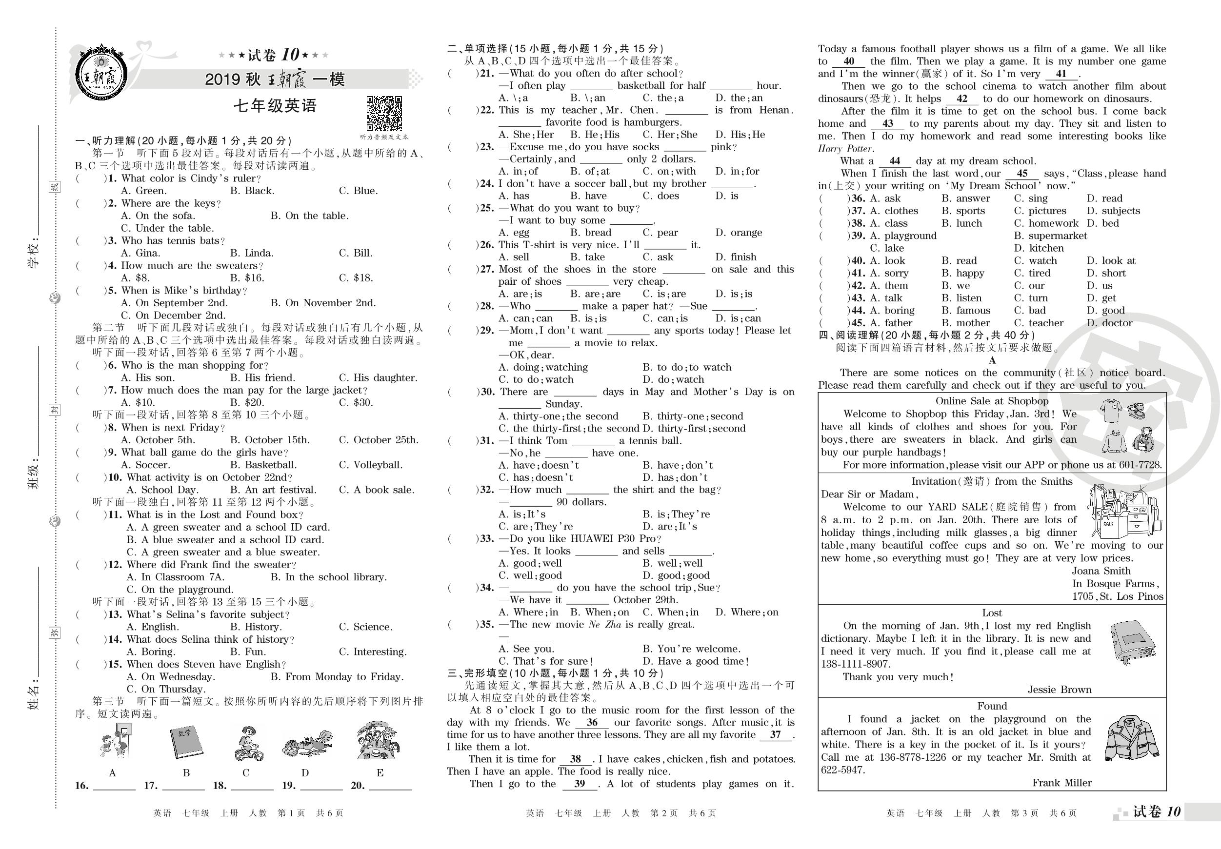 王朝霞期末模拟卷七年级上册英语(人教版)_R210807195904【10】