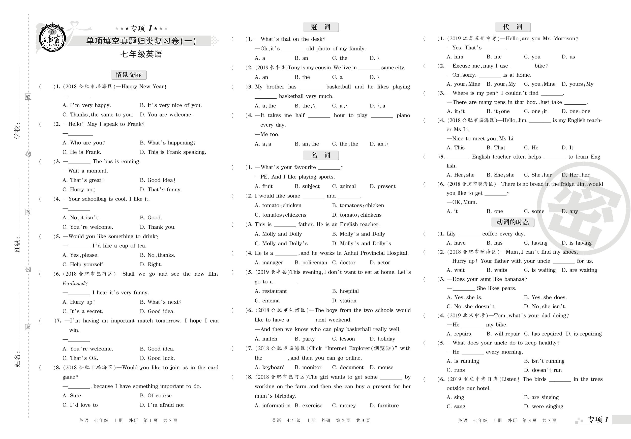 王朝霞期末专项卷——单项填空真题归类复习七年级上册英语(外研版)_R210807195925【0】