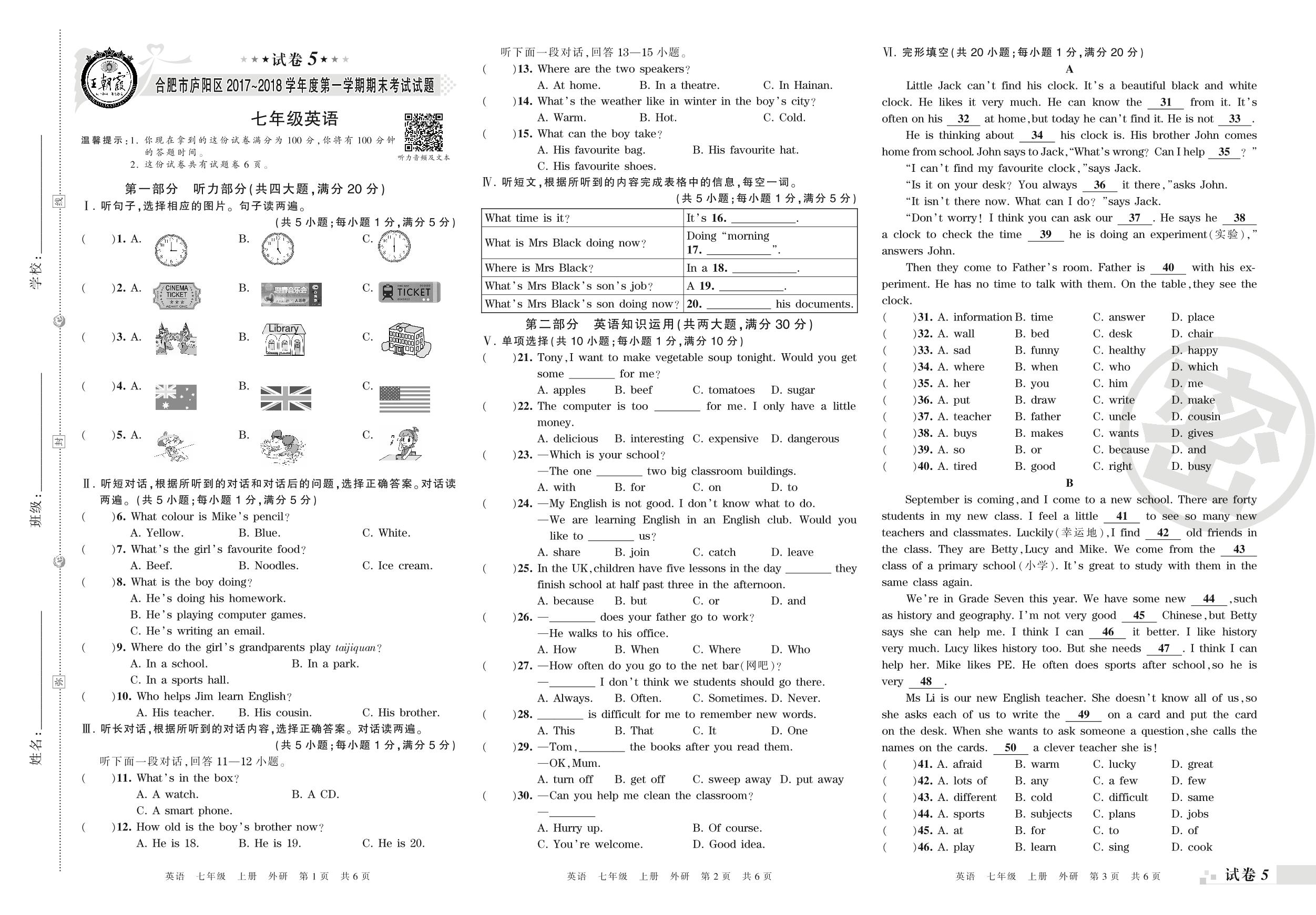 2017-2018学年第一学期合肥市庐阳区七年级英语试卷(外研版)_R211116143232163【5】
