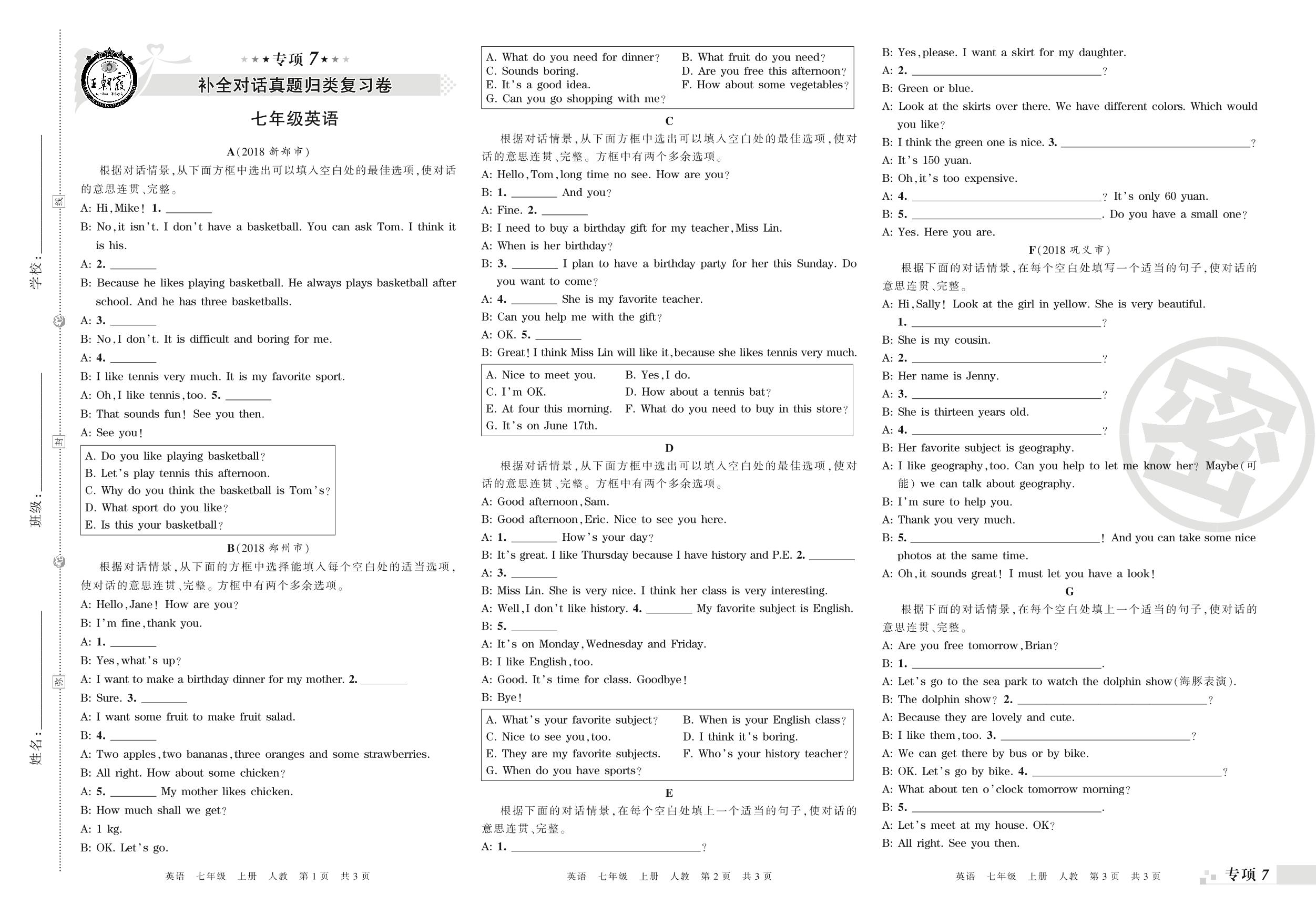 王朝霞期末专项卷——补全对话、书面表达真题归类复习七年级上册英语(人教版)_R210807200058【0】
